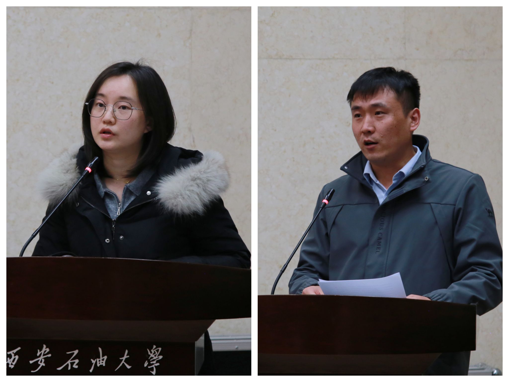 黄风林教授为新入职教师代表佩戴校徽,传递出一份深深的嘱托,也象征着教育精神的薪火相传。青年教师代表、石油工程学院副教授刘娅菲分享了个人角色转换、职业发展和教学科研工作等方面心路历程;新入职教师代表、地球科学与工程学院乔建伟老师在交流发言中表达了为建设高水平教学研究型大学做贡献的决心和信心。