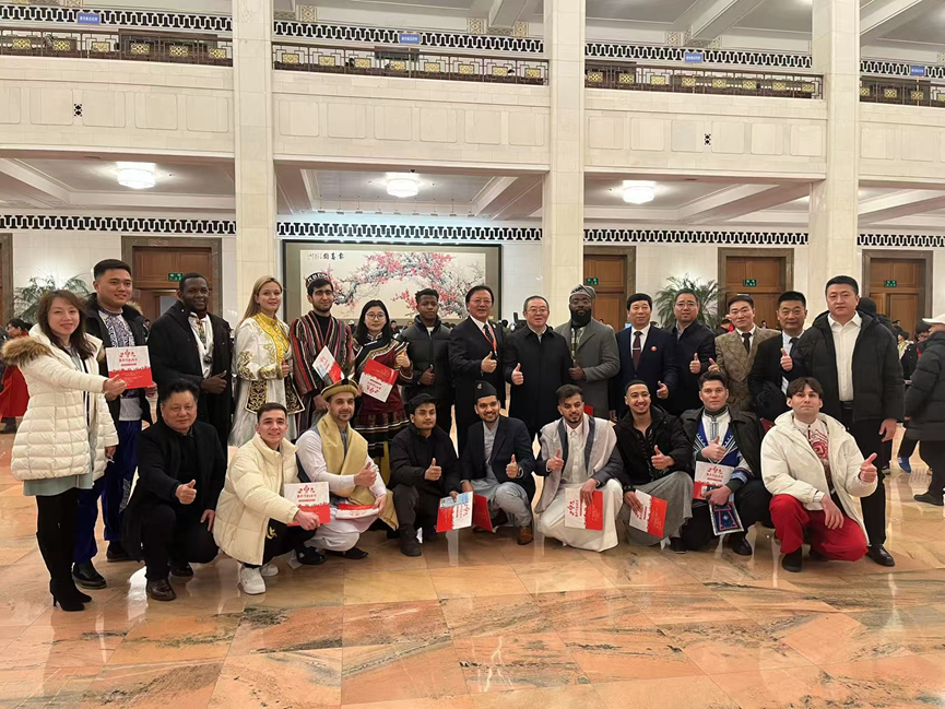 1月22日晚农历小年,第21届北京新春音乐会在人民大会堂举办。应“一带一路”文化发展中心邀请,校党委书记常江率beat365官网“一带一路”沿线国家15名国际学生现场观看,国际合作与交流处、国际教育学院负责人陪同。