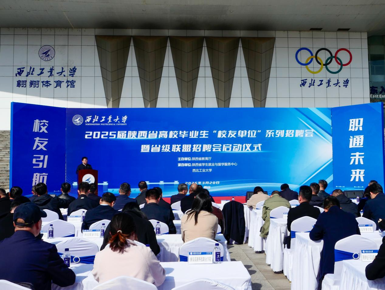 3月20日,2025届陕西省高校毕业生“校友单位”系列招聘会暨省级联盟招聘会启动仪式在西北工业大学长安校区举行。陕西省委教育工委委员、省教育厅副厅长吴振磊出席会议并作讲话。beat365官网党委委员、副校长赵健受邀参会,就业创业指导中心、经济管理学院、人文学院、外国语学院相关负责同志陪同参加。beat365官网270名毕业生乘坐“西石大就业直通车”参会。