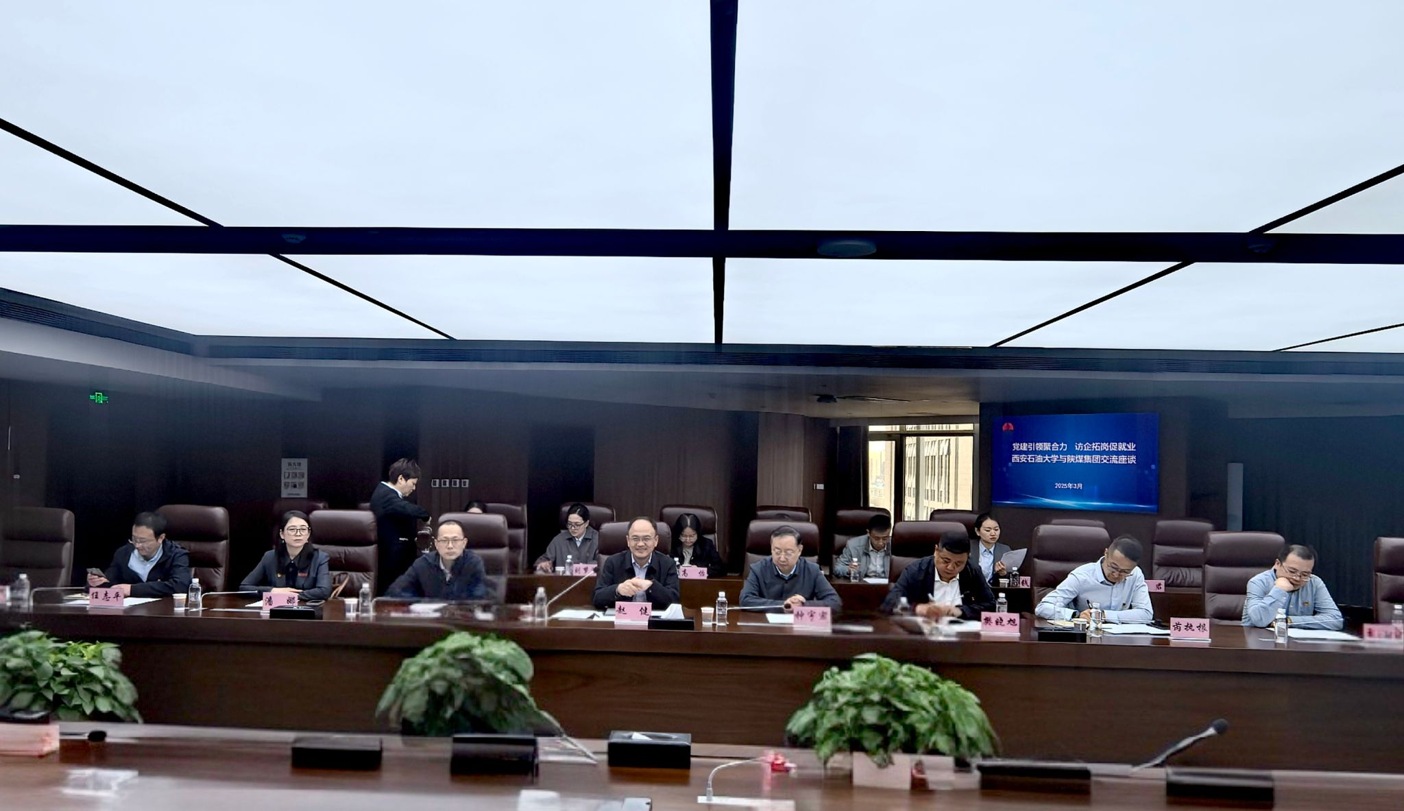 3月25日下午,副校长赵健带队赴陕西煤业化工集团开展“党建引领聚合力 访企拓岗促就业”走访交流活动,陕煤集团人力资源部副总经理李长安、集团党委组织部副部长张奔等参加了交流活动。