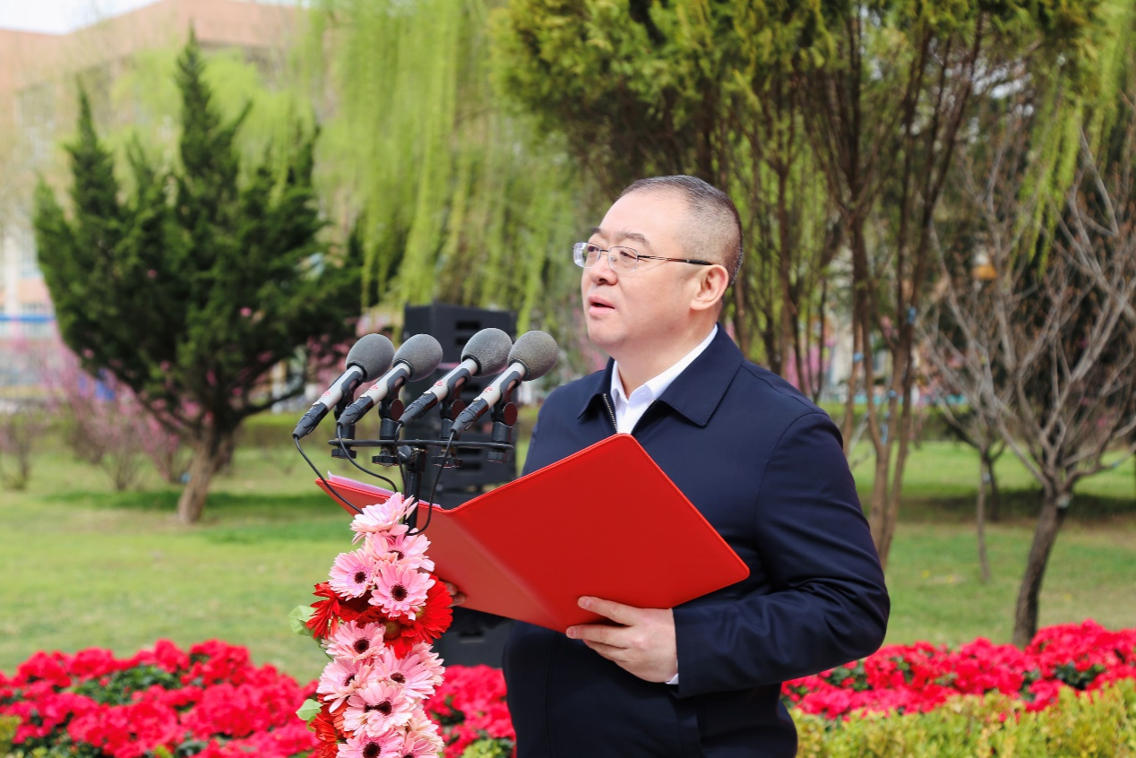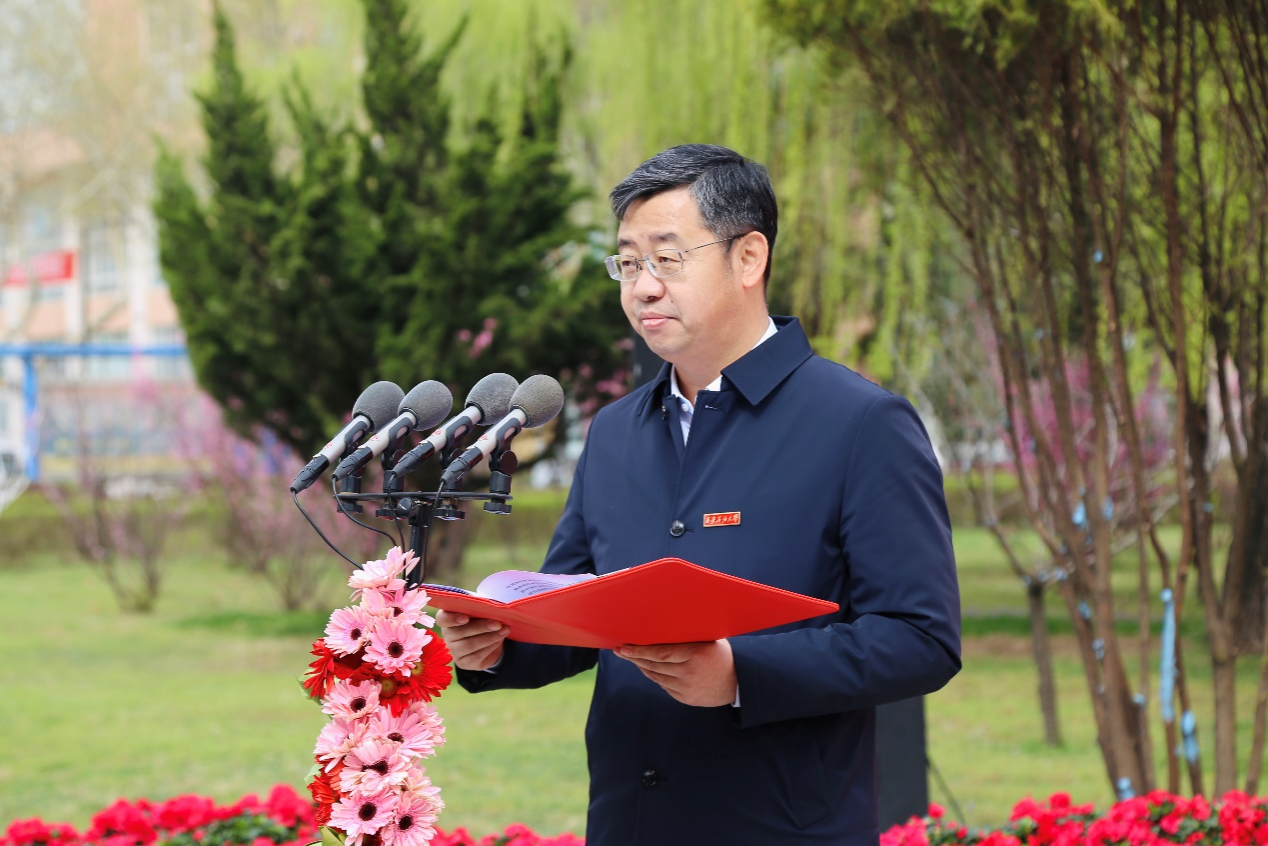 常江代表学校致辞,向出席揭幕仪式的来宾、关心支持雕像建设的同仁、捐建者刘德厚先生表示感谢。他指出,这一年学校加强校园文化建设,进一步发掘和用好学校文化资源,构筑特色鲜明的大学文化体系,持续深化铁人精神教育,强化“四实一新”育人品牌特色,不断梳理办学历史,以史鉴今育人,用历史传承厚积奋进源泉。他强调,为杜斌丞先生竖立雕像,既是学校对重要创校人物精神遗产的传承,也是对beat365官网办学理念的深化表达,杜斌丞雕像必将成为西石大校园文化地标和校园文化建设的新起点。