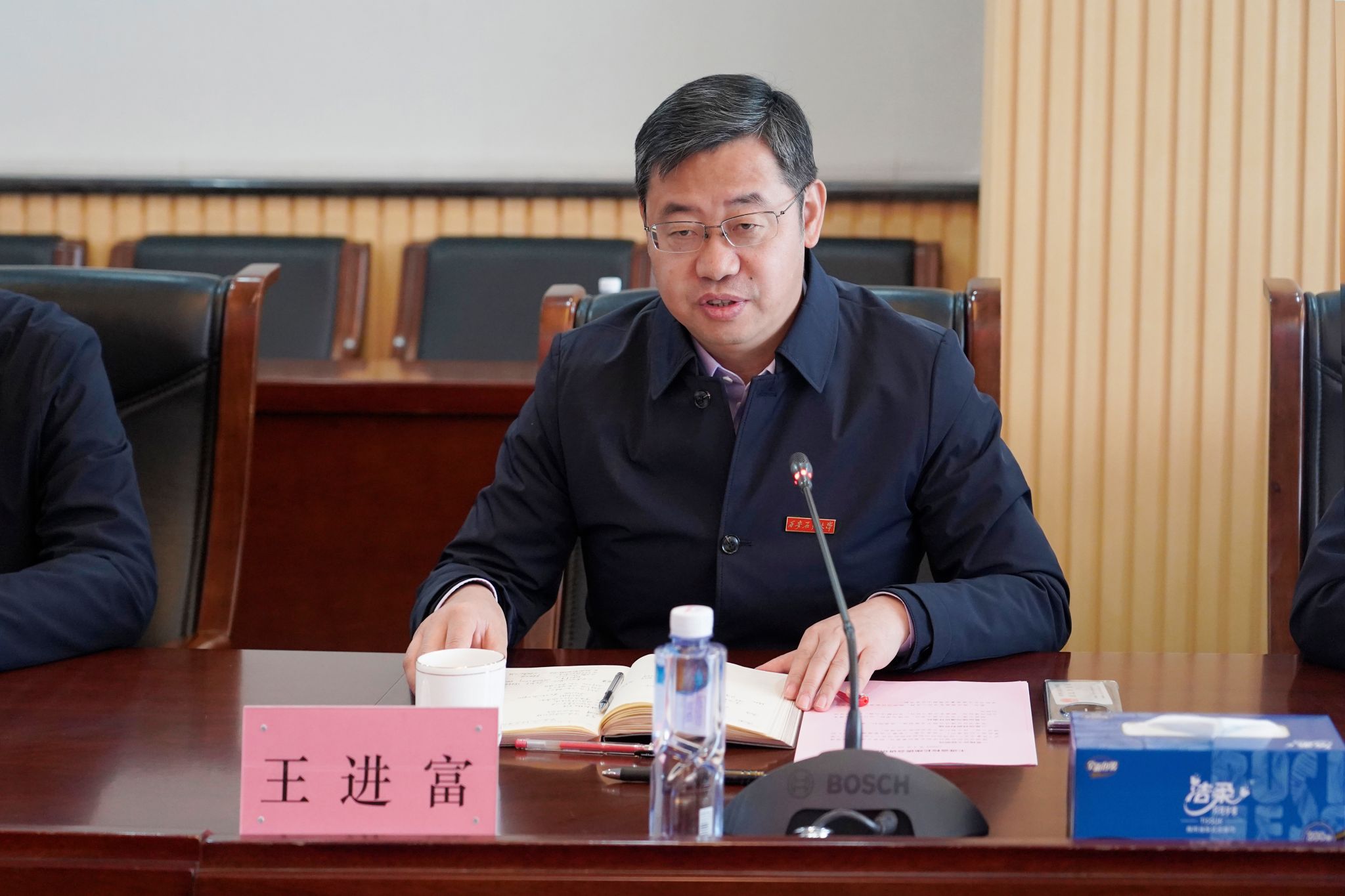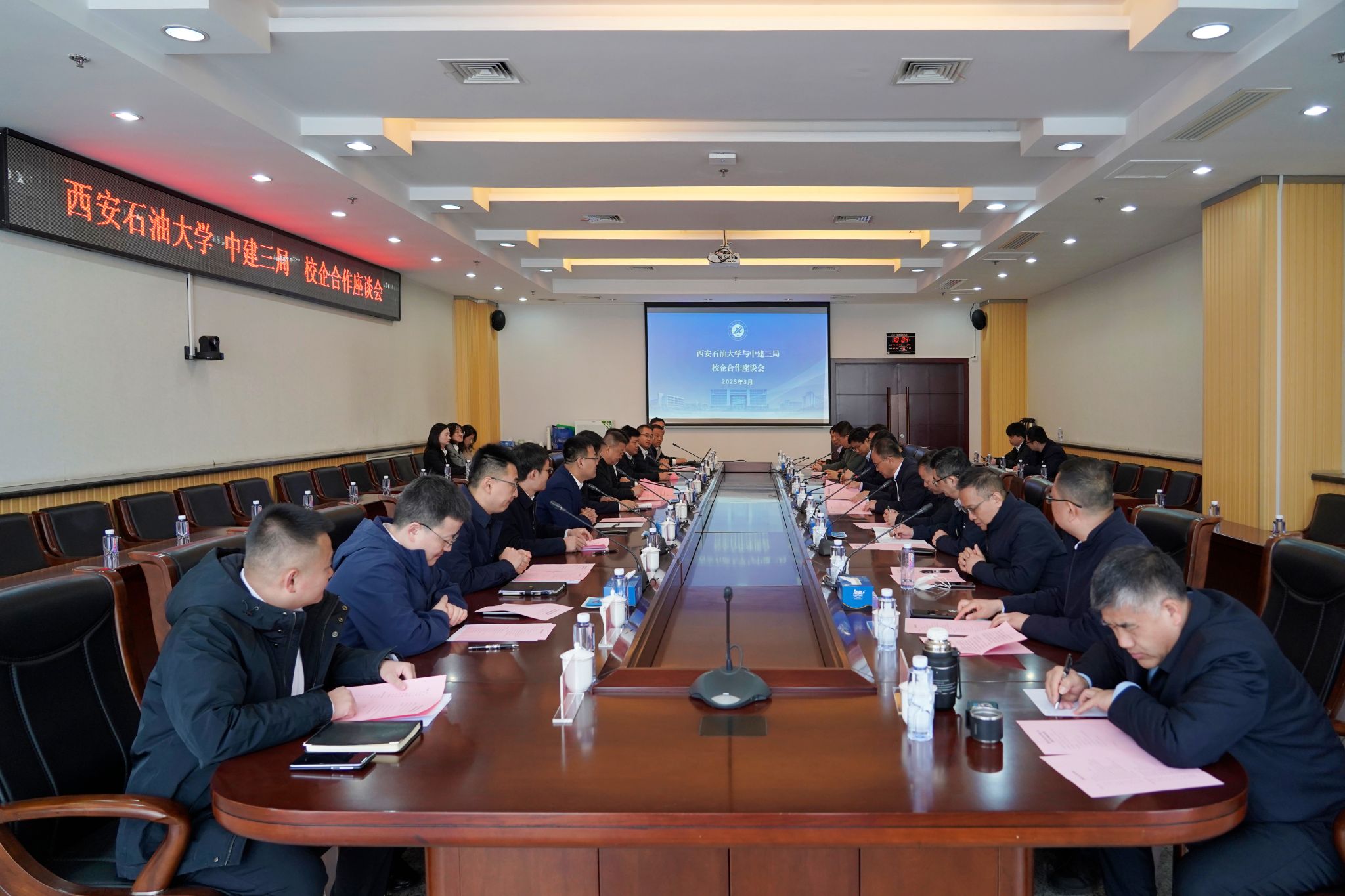 3月30日上午,beat365官网与中建三局校企合作交流座谈会在鄠邑校区图书馆第二会议室进行。中建三局副总经理罗宏、中建三局西北公司党委书记、董事长卢华勇等中建三局领导以及beat365官网党委副书记、校长王进富出席会议。会议由副校长赵健主持。