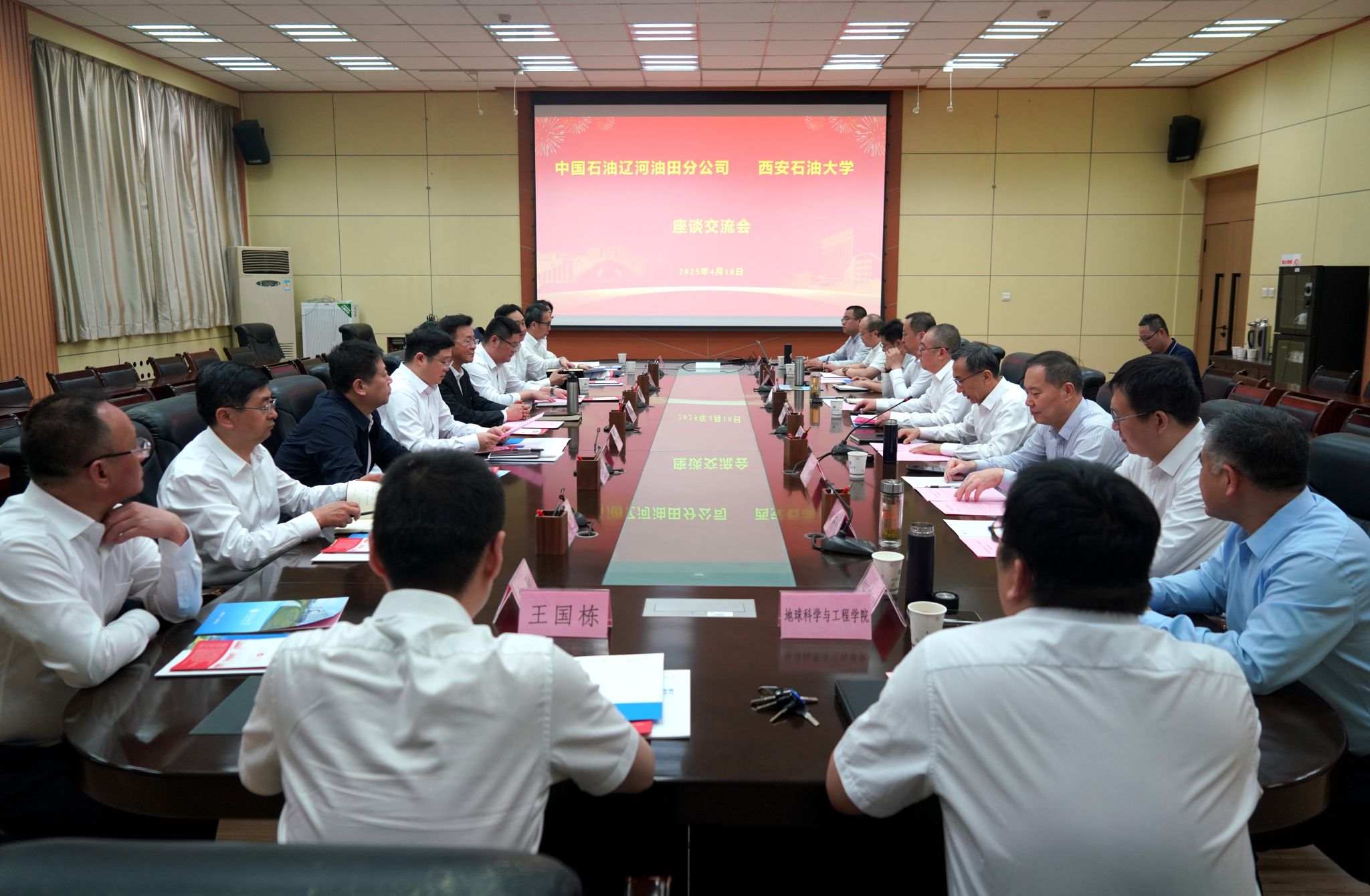 常江对齐振林一行来访表示热烈欢迎,对辽河油田长期以来给予学校的关心支持表示衷心感谢,对辽河油田近年来取得的成绩和未来的发展规划表示高度赞赏,对双方下一步深度合作表示热切期待,并梳理了学校的历史发展脉络,回顾了学校赓续红色血脉、传承石油基因的历程,阐述了学校具备的区位优势和发展建设情况。他指出,学校始终坚持以服务国家能源战略和地方经济发展为己任,近年来秉持开放办学理念,积极推进产学研深度融合,着力推动对外合作,相继成立了卓越工程师学院、碳中和未来技术研究院、边际油气开发技术研究院、能源人工智能研究院等科研机构,致力于把学校科技、人才等优势,同行业的发展所需、特色优势相结合。截至目前,学校已与多家石油石化企业建立了良好的合作关系,在科技攻关、成果转化、人才培养等方面取得了显著成效。他表示,西石大和辽河油田同根同源,双方具有深厚的历史渊源、广泛的合作基础和光明的合作前景。希望双方以此次座谈为契机,在既定合作基础上,进一步建立更加紧密的合作关系,在党建共建、科研联合攻关、科技成果转化、人才联合培养、奖项联合申报、学生实习就业、员工教育培训等方面深度合作,把校企合作的规划图、路线图变成施工图、实景图,共同担负起服务油气行业发展的使命担当,不断把校企合作推向新高度,奋力谱写校企合作新篇章,携手铸就校企合作新典范,为保障国家能源安全做出新的更大贡献。