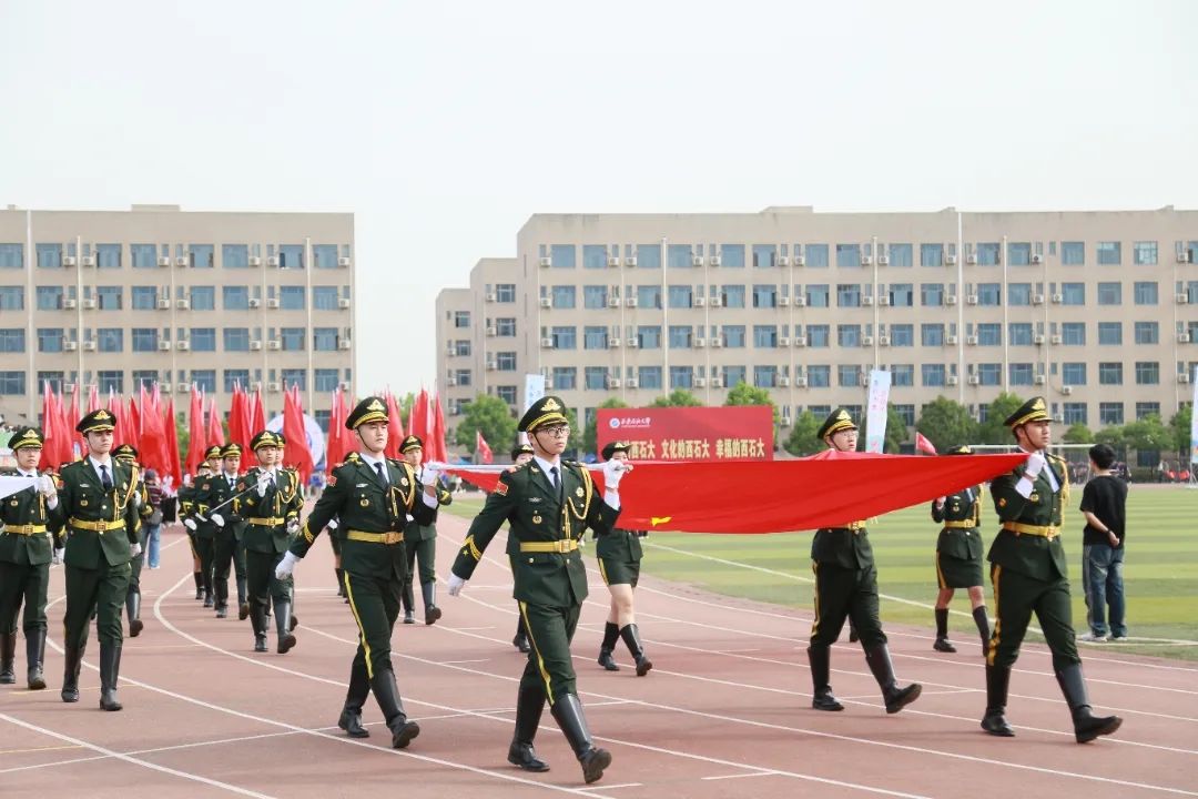 入场仪式完毕,全场起立。升中华人民共和国国旗、beat365正版唯一官网校旗、运动会会旗,全场师生齐唱国歌、校歌。