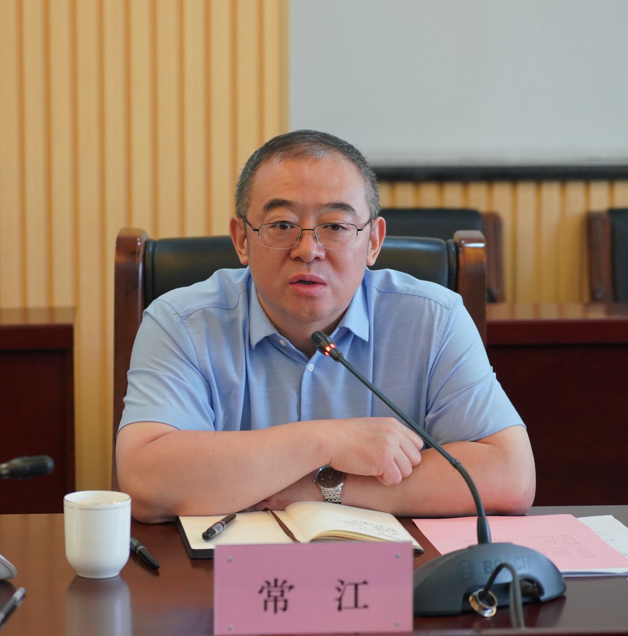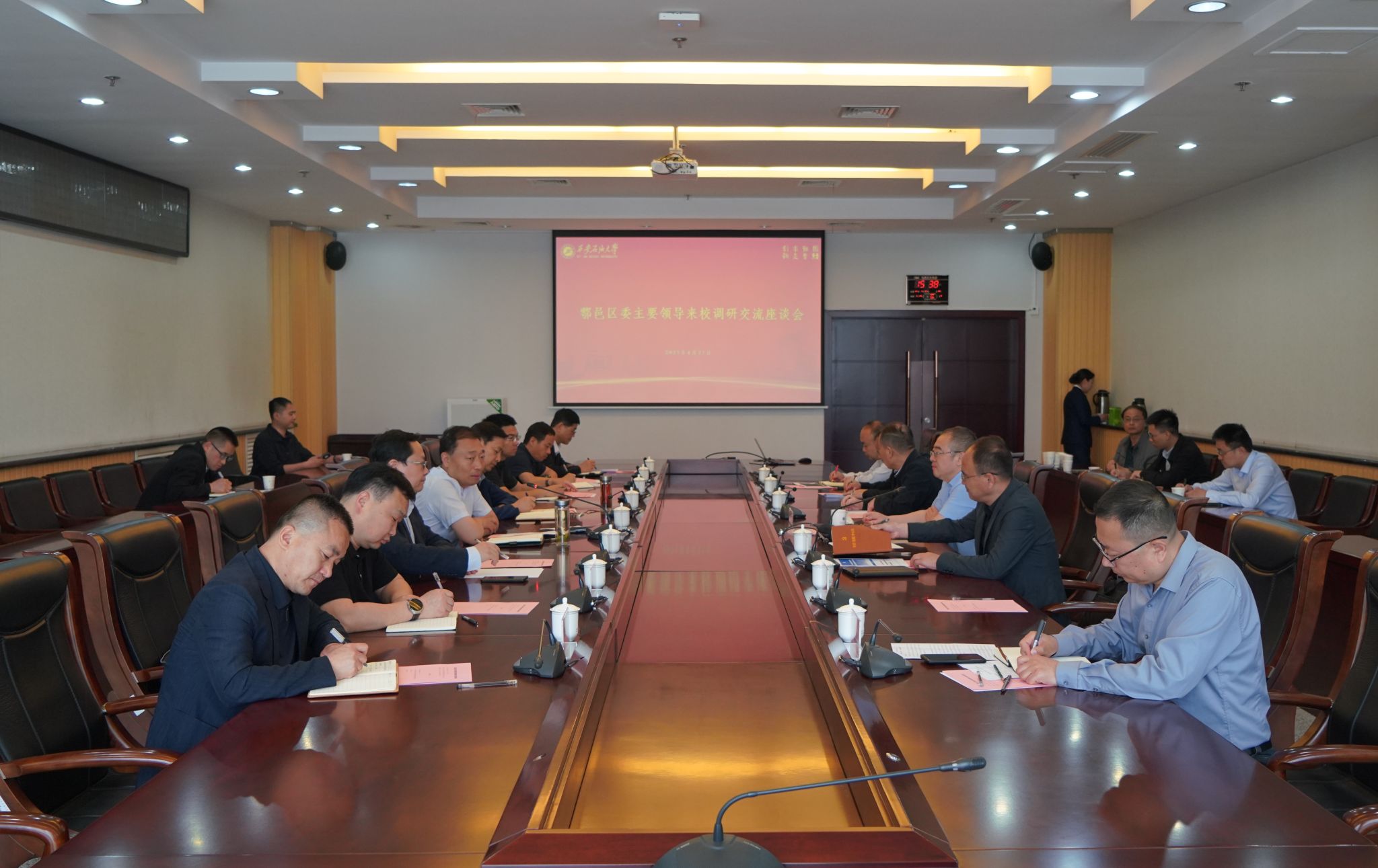 4月27日下午,鄠邑区委书记李化一行来校就进一步校地合作事宜进行交流座谈,区领导舒元华、陈鹏飞和区委区政府相关职能部门负责人参加了座谈。座谈会由校党委书记常江主持,副校长赵健出席会议。beat365官网党委办公室(校长办公室)、保卫处、发展规划处、基建处、后勤处负责人参加了座谈会。