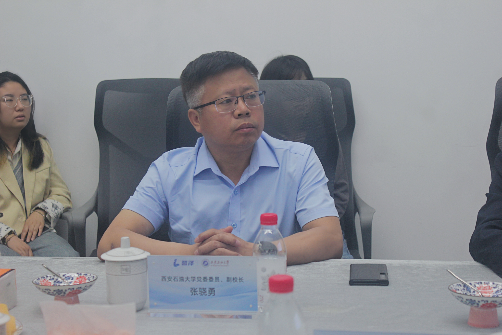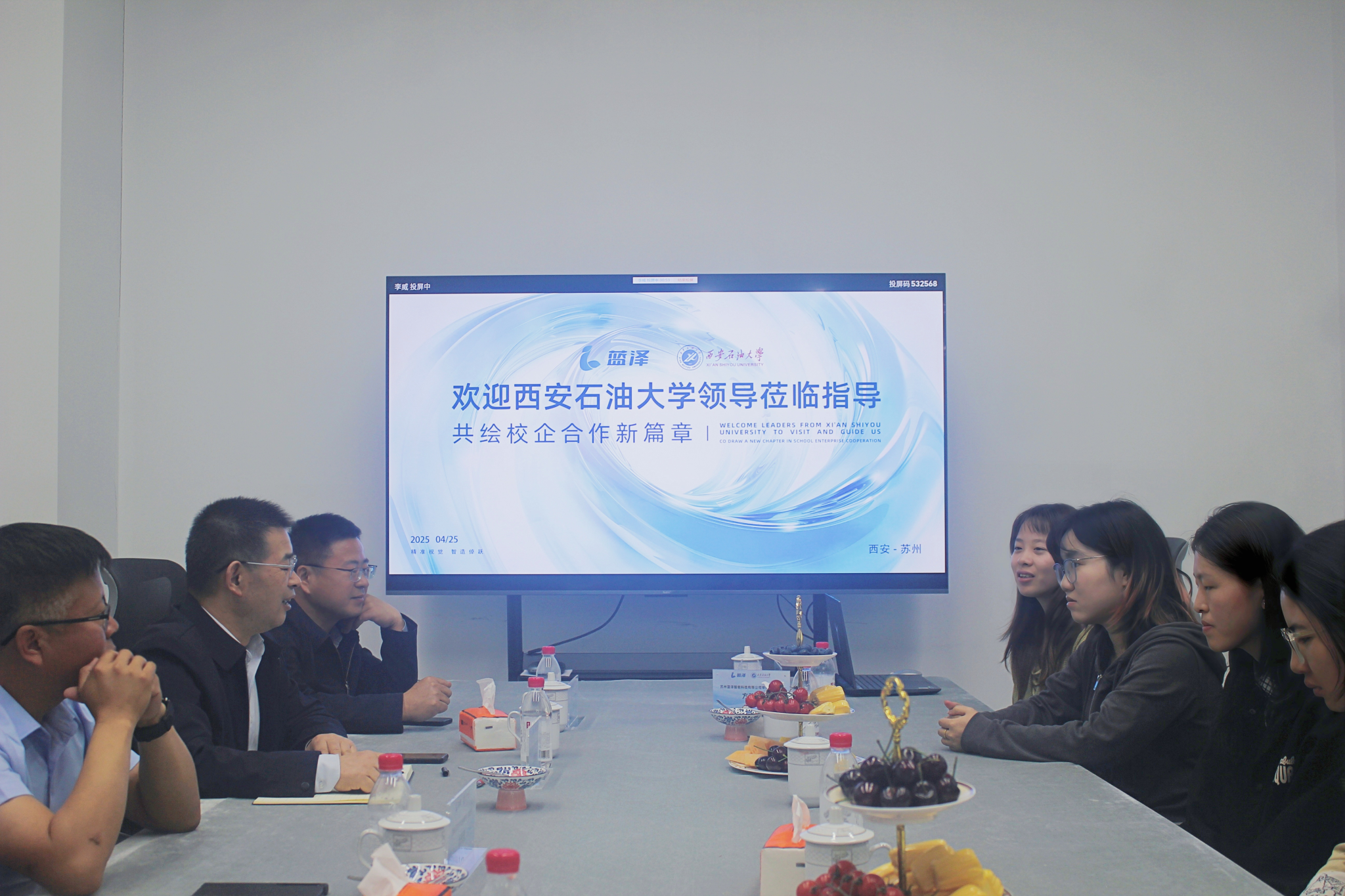 座谈会上,张骁勇介绍了学校第三次党代会提出的发展目标和任务,以及在学科建设、科学研究、人才培养、服务社会等方面取得的成绩。张骁勇表示,近年来学校扎实推进“三项改革”走深走实,积极开展基础性理论研究与能源行业等社会经济发展深度融合,注重科研成果转化,在“秦创原”等项目建设方面取得了突出成绩,这些为培养符合社会需求的人才提供了坚实基础。张骁勇强调,苏州蓝泽智能科技有限公司的发展理念和产业布局紧跟人工智能时代需求,与学校的合作空间广阔。希望借助苏州蓝泽的资源和平台,学校相关学院以毕业生供需为纽带,深度参与公司的产品研发、技术迭代升级等领域合作,组织教师来公司交流学习,把校企合作项目落实落细。