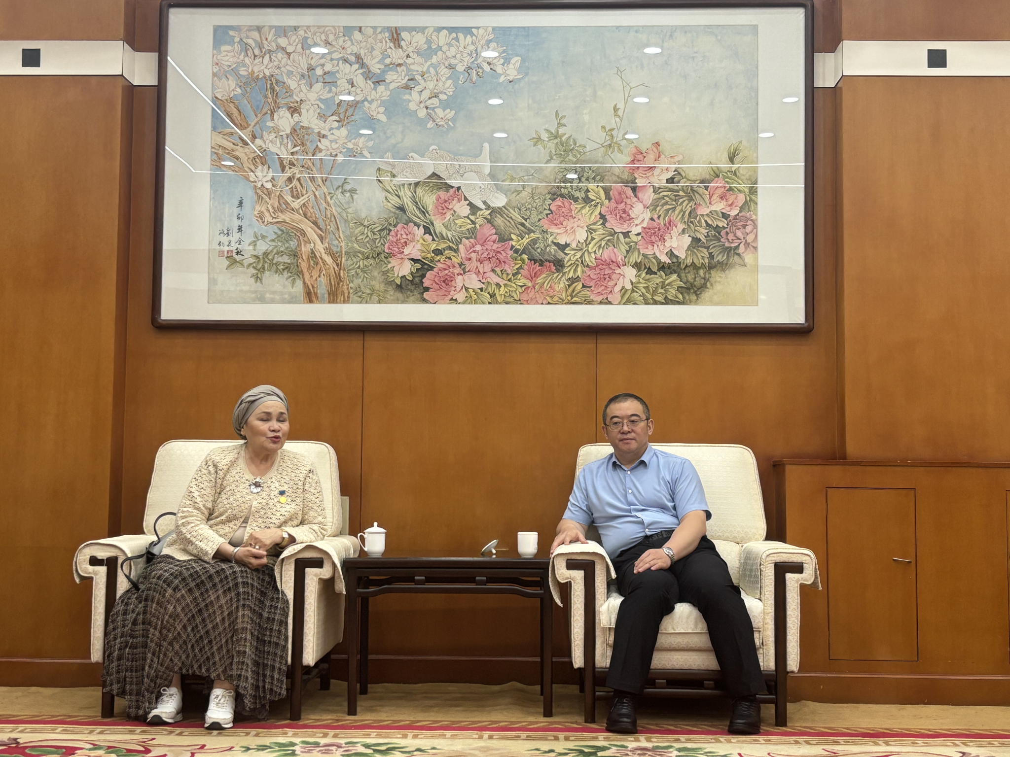 4月30日上午,哈萨克斯坦著名艺术毛毡设计师、功勋艺术工作者巴帕诺娃·萨乌列教授,吉尔吉斯坦著名画家、雕塑家别什哈耶夫•朱姆加勒别克等一行5人来beat365官网交流座谈。校党委书记常江在雁塔校区西阶第四会议室贵宾厅接见了中亚艺术家团队一行。