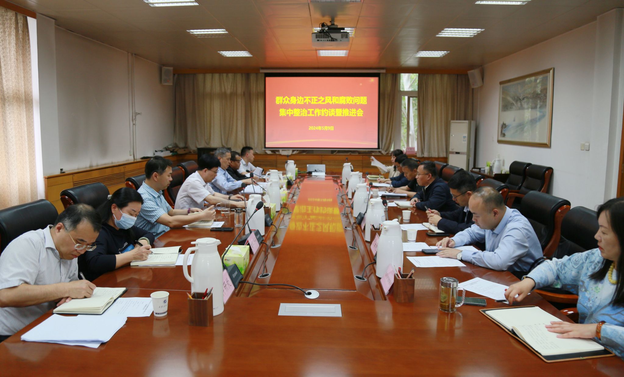 5月9日下午,学校纪委在雁塔校区办公楼五楼会议室召开群众身边不正之风和腐败问题集中整治工作约谈暨推进会。校党委副书记、纪委书记、监察专员王辉强出席会议并讲话,相关职能部门主要负责人,纪检监察机构相关负责人参加会议。