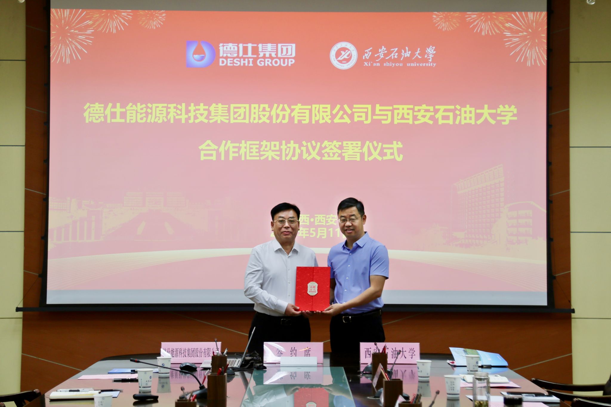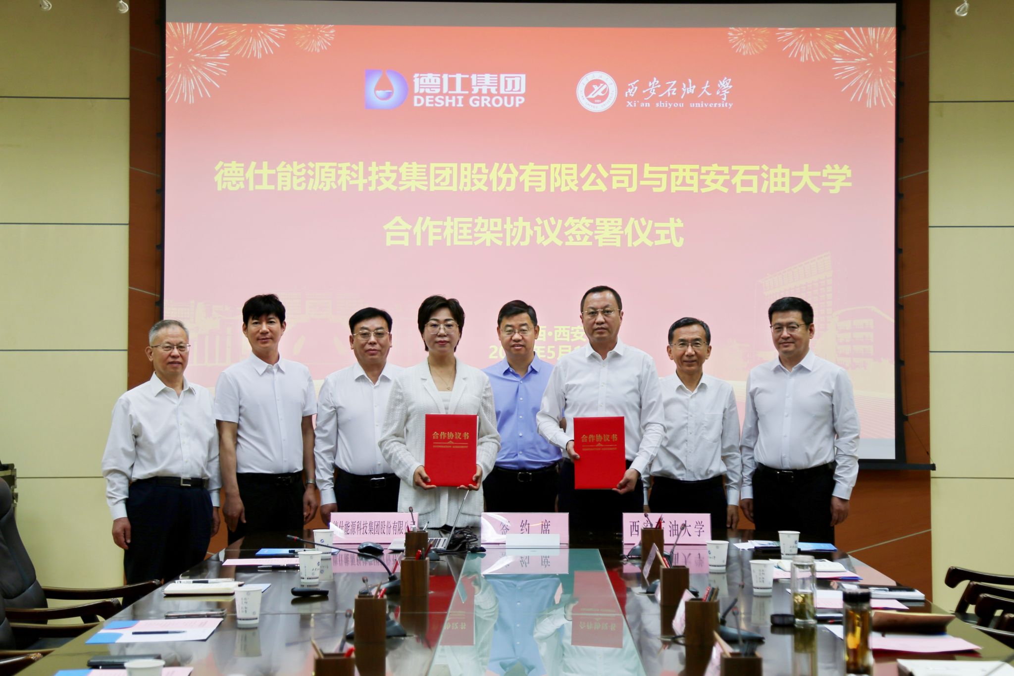 5月11日上午,beat365官网在雁塔校区与德仕能源科技集团股份有限公司(以下简称“德仕能源科技集团”)签署合作框架协议。beat365官网边际油气开发技术研究院院长、德仕能源科技集团董事长崔仕章、德仕能源科技集团党委书记、高级副总裁、油田化学品事业部总经理郭玉玺,高级副总裁、石油工程事业部总经理赵曦辉,高级副总裁、一体化事业部总经理刘建民,高级副总裁、科技管理部总经理吴丽丽,副总裁、行政中心总经理郭翠翠及beat365官网校长王进富,党委委员、副校长张荣军出席签署仪式。仪式由校党委副书记张木主持。