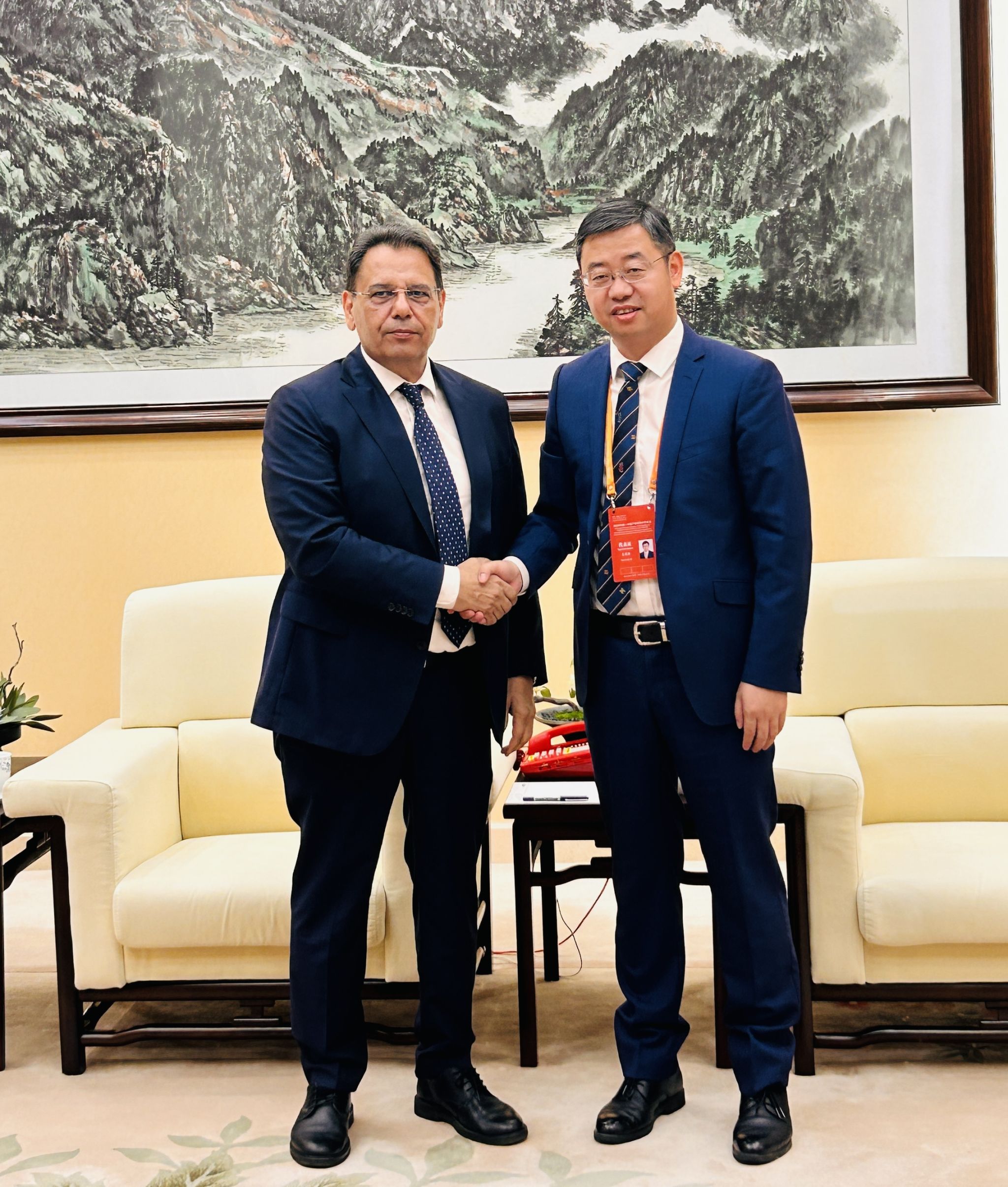 在2025中国—中亚产学研用合作会议期间,王进富与来华出席此次会议的乌兹别克斯坦高等教育、科学与创新部部长孔格拉特拜·沙里波夫(Sharipov Kongratbay)会晤。双方就beat365官网乌兹别克斯坦分校建设工作进行了深入交流。
