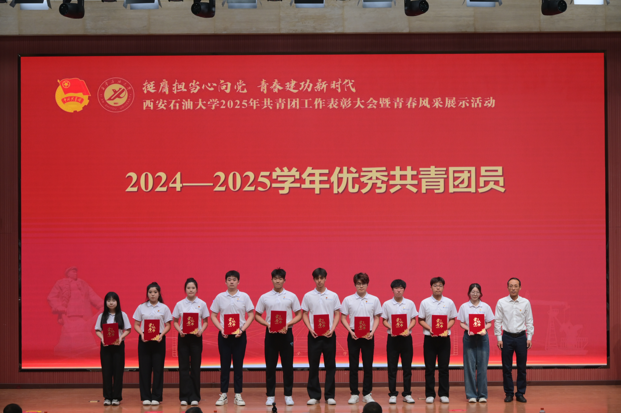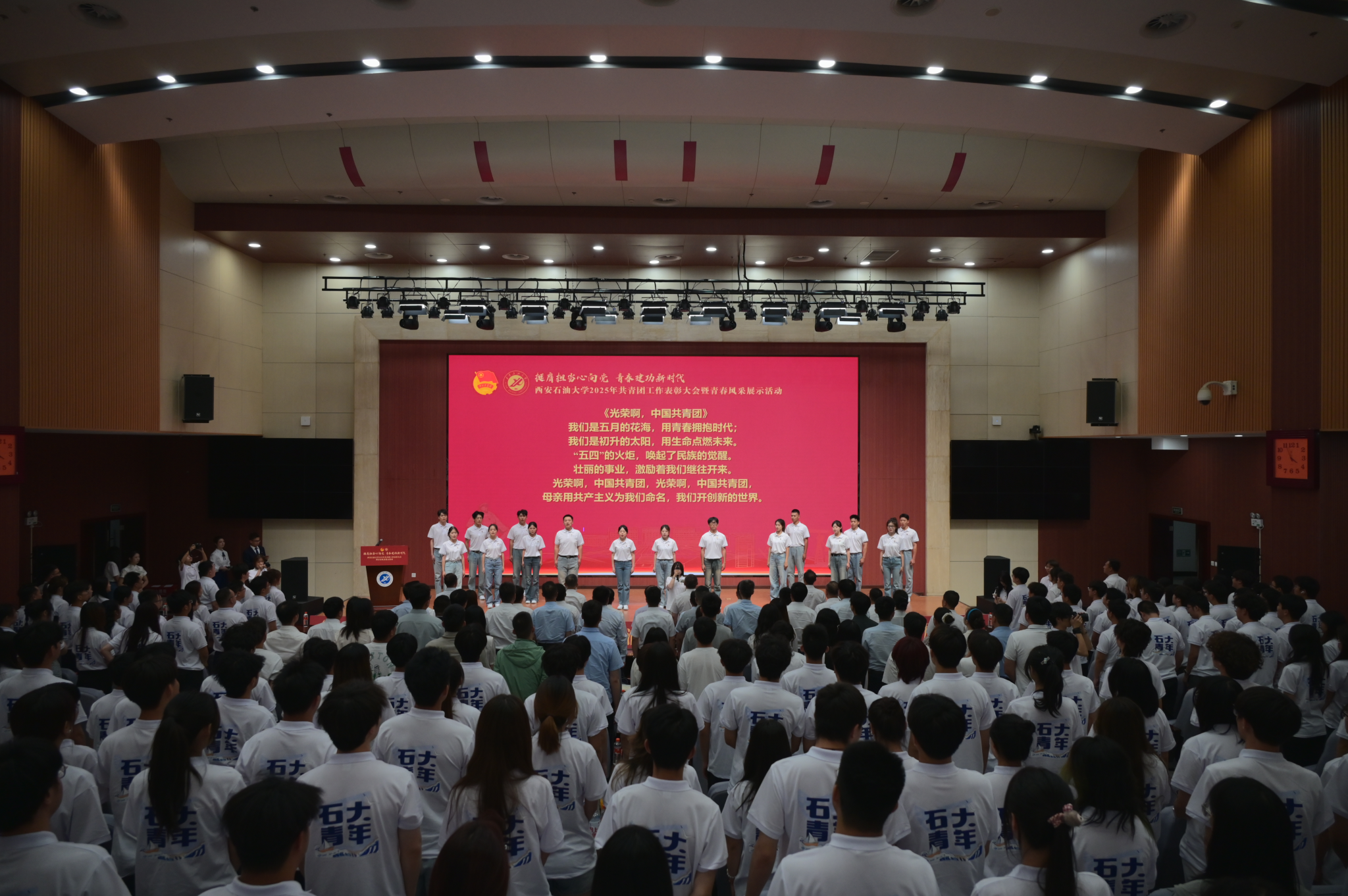 本次大会分为“引领·凝聚青春力量”“绽放·谱写时代华章”“启航·传承五四薪火”三个篇章,通过表彰先进、风采展示、入团仪式等多种形式,展现西石大青年昂扬向上、锐意进取的精神风貌。