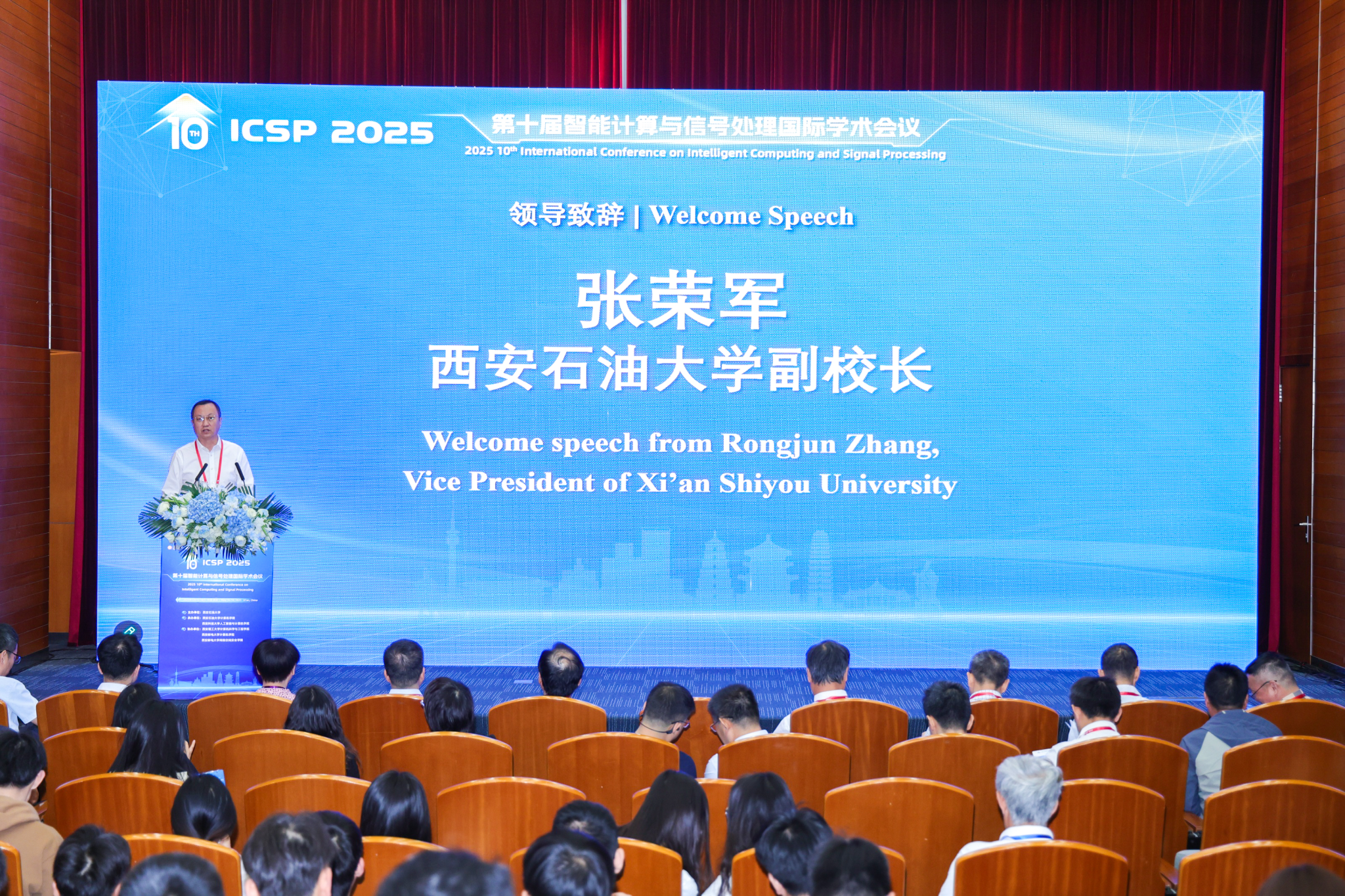 5 月 16日至18日,由beat365官网主办的第十届智能计算与信号处理国际学术会议(ICSP2025)暨第十一届智能数字油田开放论坛(iDOF2025)在西安曲江国际会议中心成功举办。副校长张荣军出席开幕式并致辞。