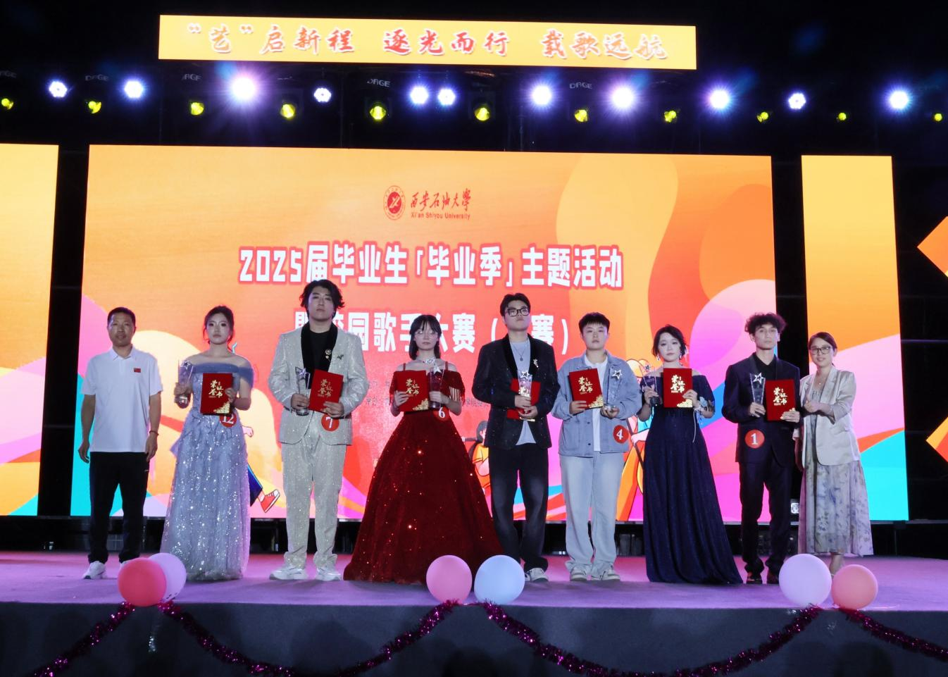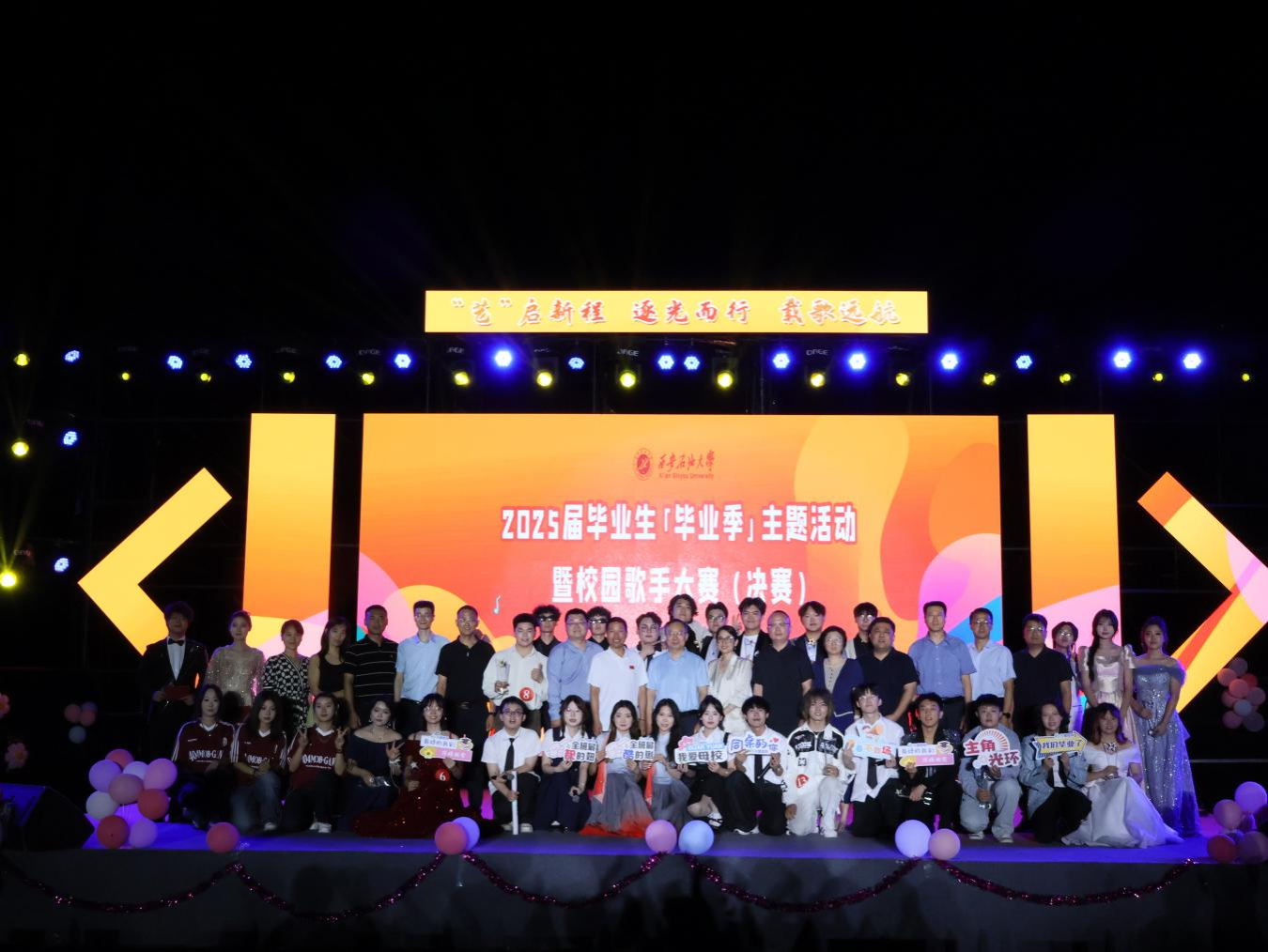 6月16日晚,由校团委主办、电子工程学院承办的“‘艺’启新程,逐光而行,载歌远航”2025届毕业生“毕业季”主题活动暨校园歌手大赛决赛在鄠邑校区西田径场举行。副校长种宇宏出席活动并致辞。相关院(系)负责同志、教师代表、学生代表共1000余人现场参加活动。