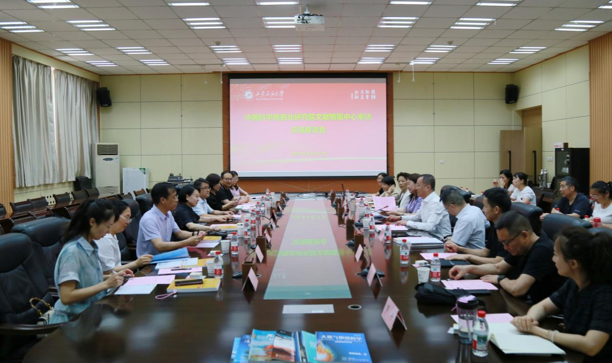 6月17日,中国科学院西北生态环境资源研究院文献情报中心党总支书记刘蔚一行八人来校交流访问。座谈交流会在雁塔校区会议中心第一会议室举行,会议由副校长张荣军主持,图书馆、期刊中心负责人,图书馆教师代表和期刊中心全体编辑参加会议。