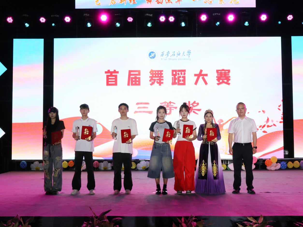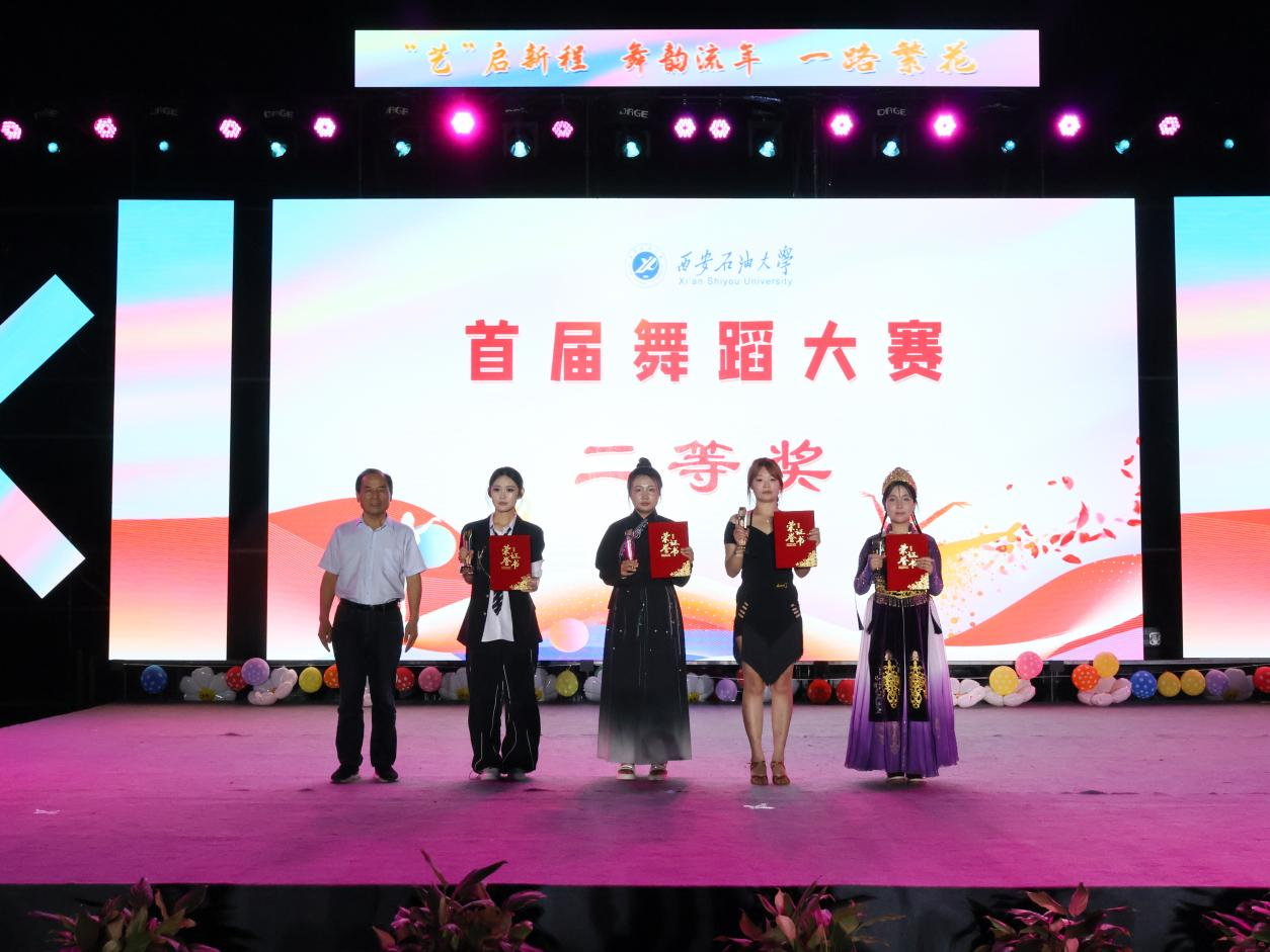 经评委评审,外国语学院《消失》、音乐系《新时代石油接班人》获一等奖;机械工程学院《牵丝戏》、人文学院《路西法》、外国语学院《Go Girl》、预科班《石榴之花》获二等奖;计算机学院《无需扬鞭自奋蹄》、人文学院《麦西莱普》、电子工程学院《Diamond》、石油工程学院《Keep on popping》、地球科学与工程学院《Cheer up》、体育学院《We rock》获三等奖。与会领导为获奖队伍颁奖。