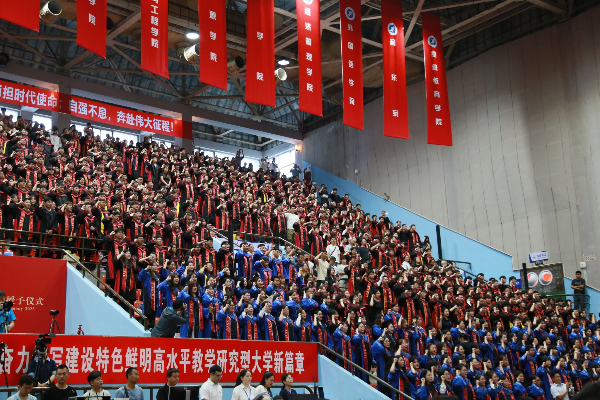 毕业典礼在庄严的国歌声中拉开帷幕。