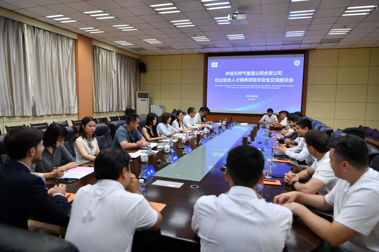 6月19日,中油国际管道有限公司人力资源部副主任李正清、中塔天然气管道公司人力资源部经理玛蒂娜一行5人来校访问。调研座谈会在雁塔校区会议中心贵宾室举行,副校长张荣军出席。