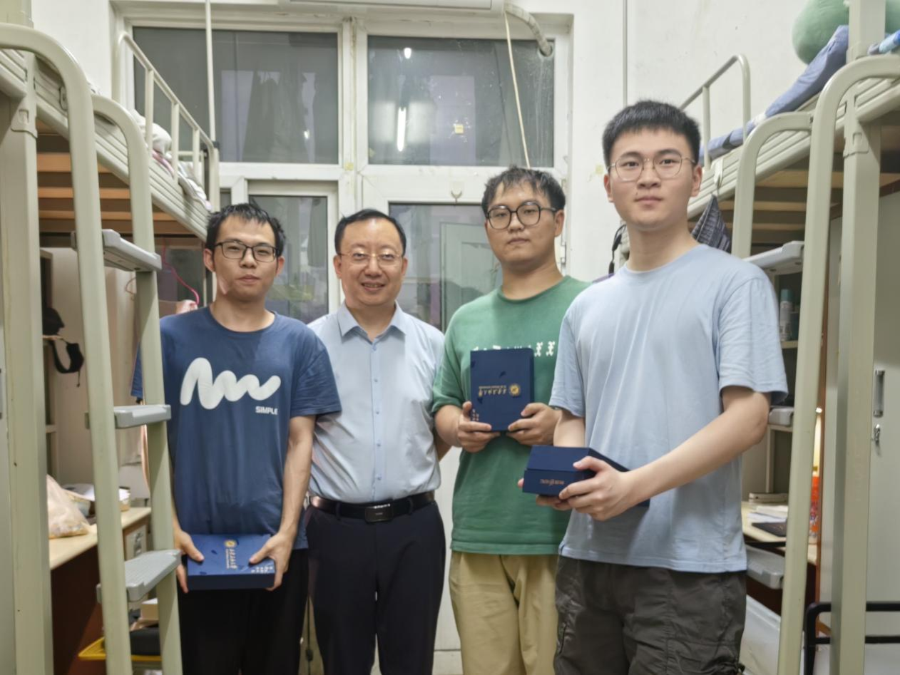 走访中,种宇宏与毕业生们亲切交流,关切询问同学们在校期间的学业成长、就业去向及未来规划。交谈过程中,他还向毕业生们赠送了饱含心意的毕业纪念品,包括镌刻着“石大栋梁 矢志报国”字样的英雄钢笔,蕴含励志精神的书籍《奔腾岁月》,以及憨态可掬的易班熊玩偶,每一份礼物都寄托着对毕业生的美好期许与深情祝福。同学们敞开心扉,畅谈成长感悟与奋斗目标。对升学深造的同学,种宇宏充分肯定其学业成果,殷切嘱托大家要秉持“好学力行,自强不息”的校训精神,在学术道路上勇攀高峰;对即将奔赴工作岗位的同学,他送上诚挚祝贺,勉励大家在新岗位上脚踏实地、锐意进取,以实干成就人生价值。温馨互动点燃了现场气氛,同学们纷纷拿出获赠书籍,热情邀请种宇宏副校长在扉页签字赠言,希望带着这份珍贵的祝福踏上新的征程。