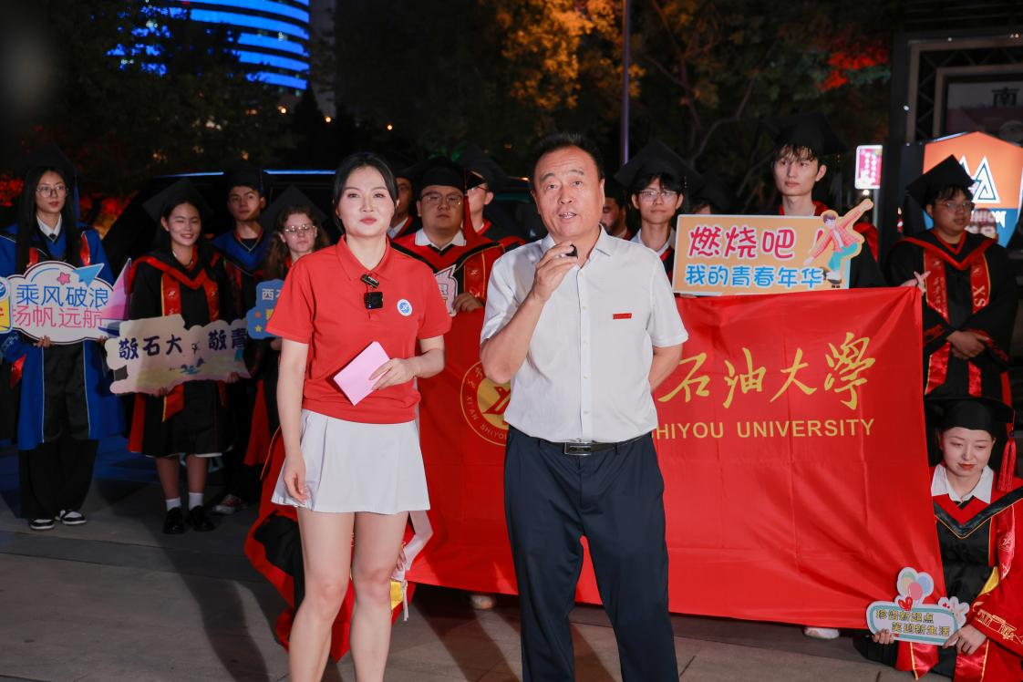 当直播间传来“传承铁人精神,坚定能源报国理想”的激昂口号,瞬间点燃鄠邑校区毕业生宿舍楼下的热烈氛围。当“祝西石大2025届毕业生前程似锦”的祝福在夜色中闪耀,母校的牵挂化作熠熠星光,传递着最真挚的祝愿。点点灯火传递城市祝福,声声叮咛承载母校深情。点亮活动甫一结束,种宇宏在学工部负责人、各院系副书记及毕业班辅导员的陪同下,步履不停,深入毕业生宿舍,开展暖心走访慰问,为即将扬帆远航的学子送上关怀与祝福。