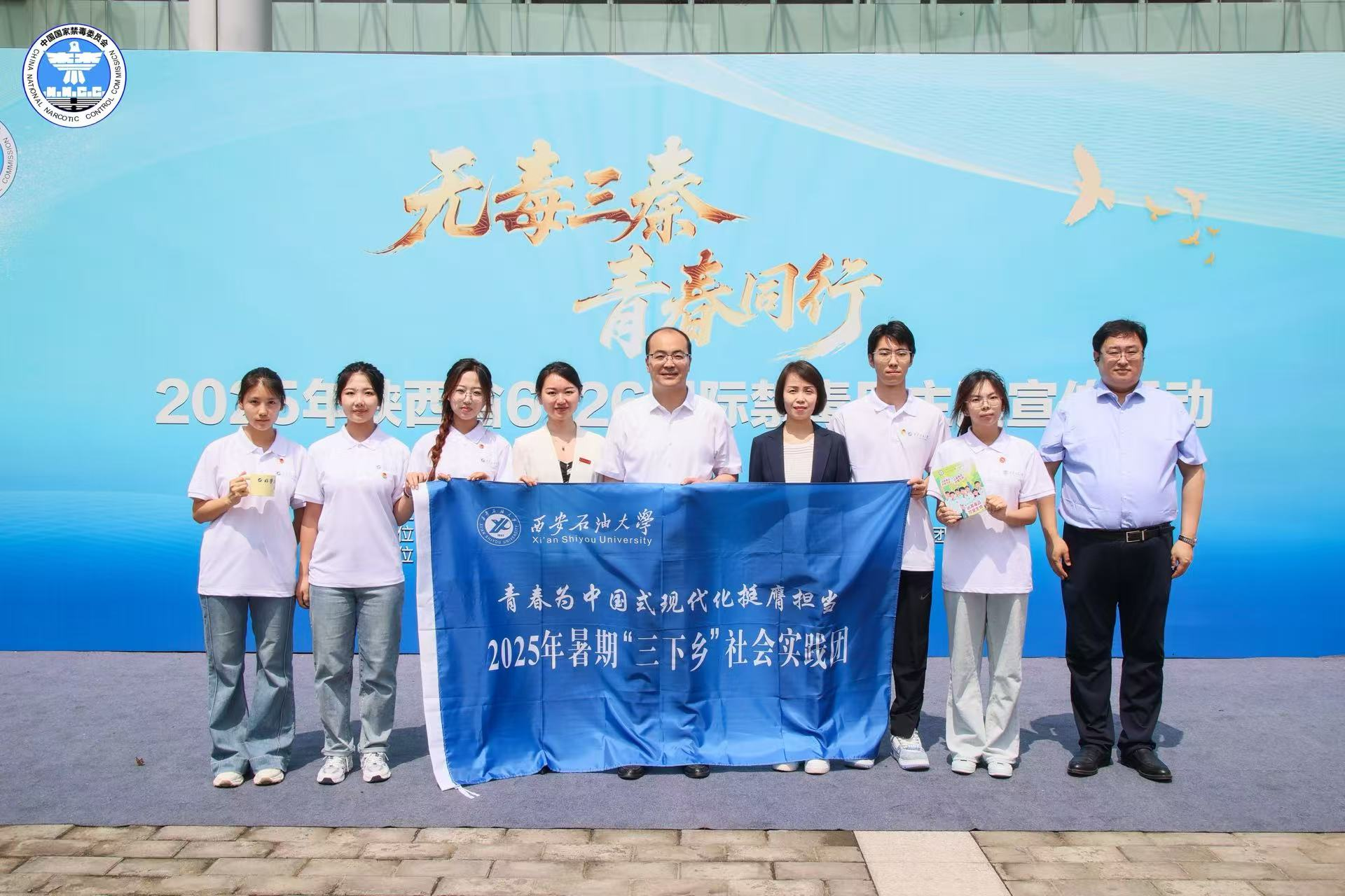 6月26日上午,2025年陕西省“无毒三秦 青春同行”禁毒宣传主题活动在陕西师范大学长安校区举办,由beat365官网电子工程学院学生组成的“坚定禁毒不松懈”实践团队作为法治禁毒专项实践活动一类资助团队代表参加本次活动。