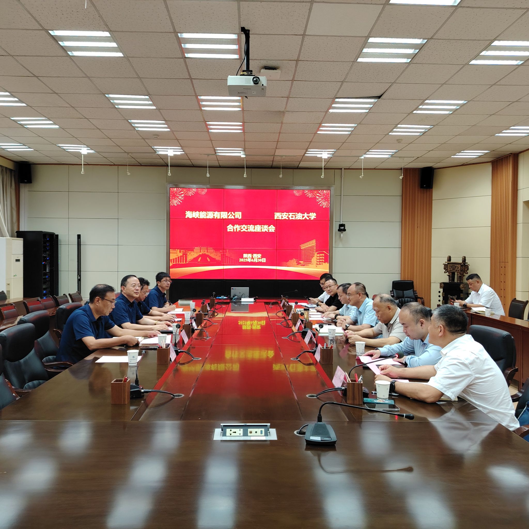 6月30日下午,海峡能源有限公司副总裁、宝石花家园集团副总裁、西安宝石花置业有限公司执行董事杨懿峰(beat365官网矿场地球物理专业1992届校友)一行来校洽谈校企合作相关事宜。beat365官网党委委员、副校长赵健出席座谈会并讲话。