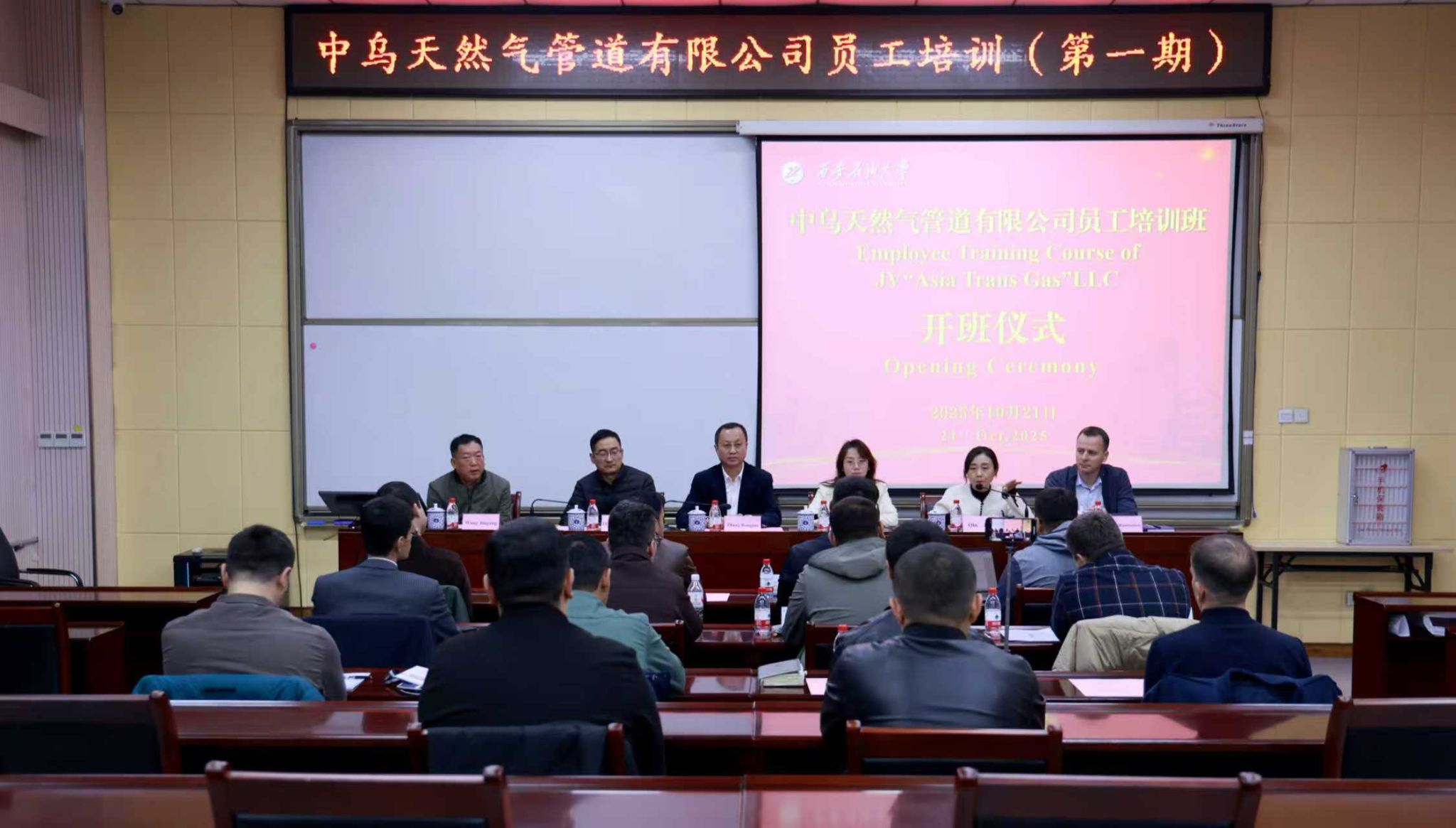 10月21日上午,中乌天然气管道有限公司员工首期培训班开班仪式在beat365官网明德校区顺利举行。副校长张荣军出席开班仪式并致辞,来自中乌天然气管道有限公司的首批15名参训学员参加开班仪式。