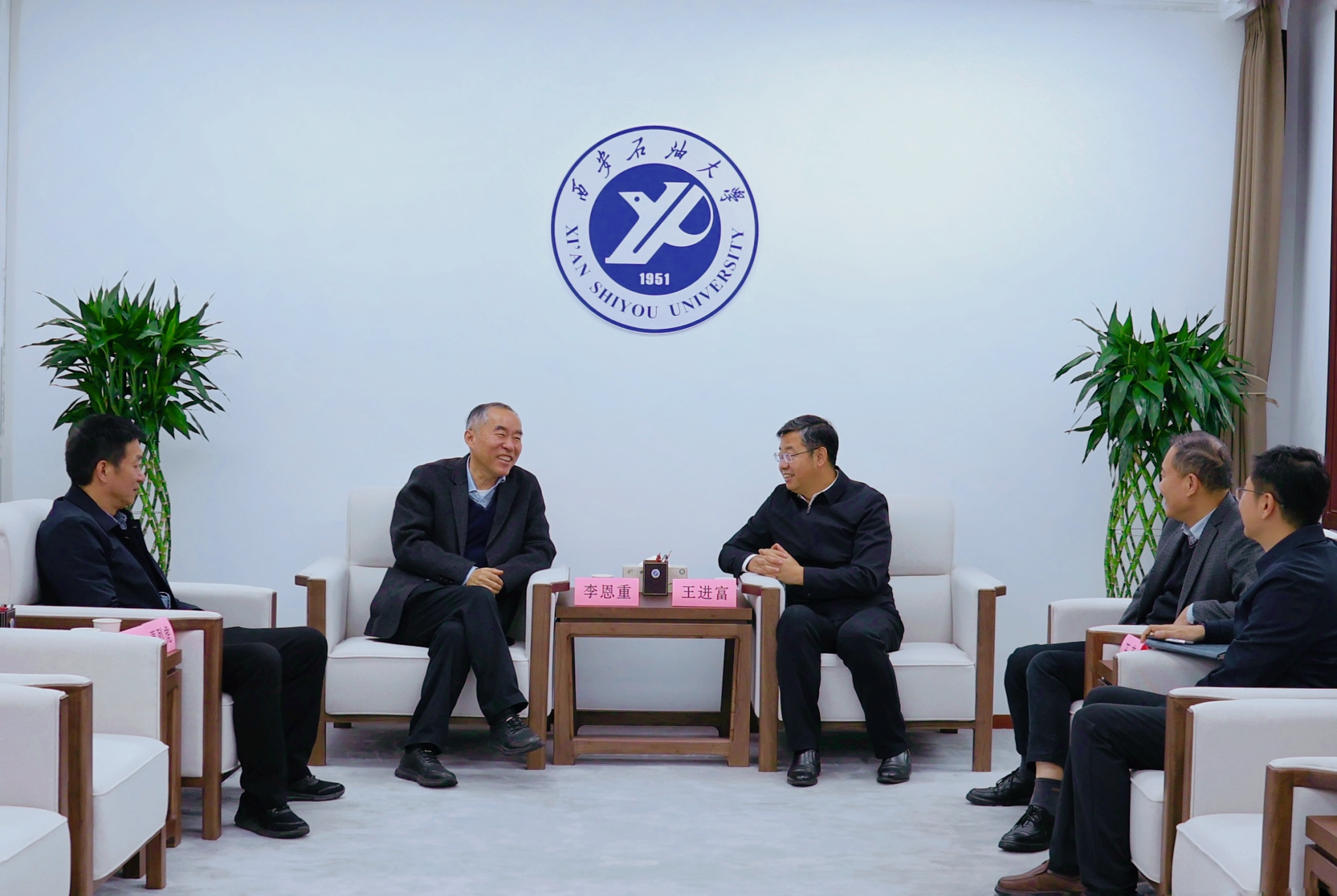 会前,校长王进富在办公楼贵宾室会见李恩重一行。双方就学校发展现状、未来规划和人才联合培养等问题进行了深入交流。