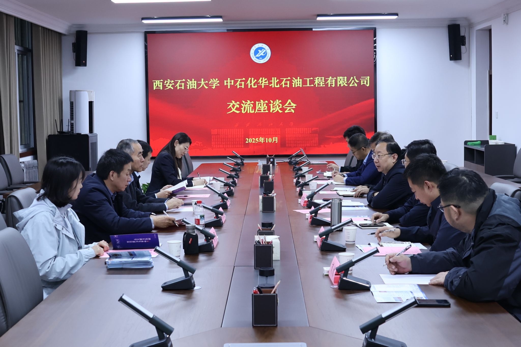 10月24日上午,中石化华北石油工程有限公司副总经理李恩重一行来校走访并开展2026届毕业生招聘工作。副校长种宇宏出席座谈会并讲话。学校就业创业指导中心相关负责人、石油工程学院、电子工程学院、机械工程学院学生工作主要负责同志参加会议。会议由学生工作部(处)部(处)长、就业创业指导中心主任王亮主持。