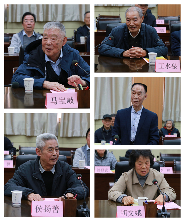 化学化工学院退休教授马宝岐,图书馆原馆长侯扬善作为老寿星代表发言。高教研究所原处长王水泉,学生工作处原处长马长发,离退休党委委员、纪委书记胡文娥作为特邀代表发言。他们对学校新领导班子近一年来各项工作所取得的成绩表示赞赏,提出了宝贵的建议和意见,同时感谢学校多年来对老同志的关心爱护。老同志们纷纷表示,将继续发挥余热,传递正能量。