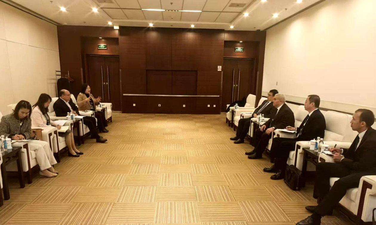 10月30日上午,beat365官网与卡卡耶夫国际油气大学、河北石油职业技术大学、中国教育国际交流协会在京召开土库曼斯坦鲁班工坊四方工作推进会。卡卡耶夫国际油气大学校长拜拉姆穆拉特·阿塔马诺夫,beat365官网副校长张荣军,河北石油职业技术大学副校长马显才,中国教育国际交流协会(以下简称“协会”)职业培训合作部副主任赵烨参加会议。