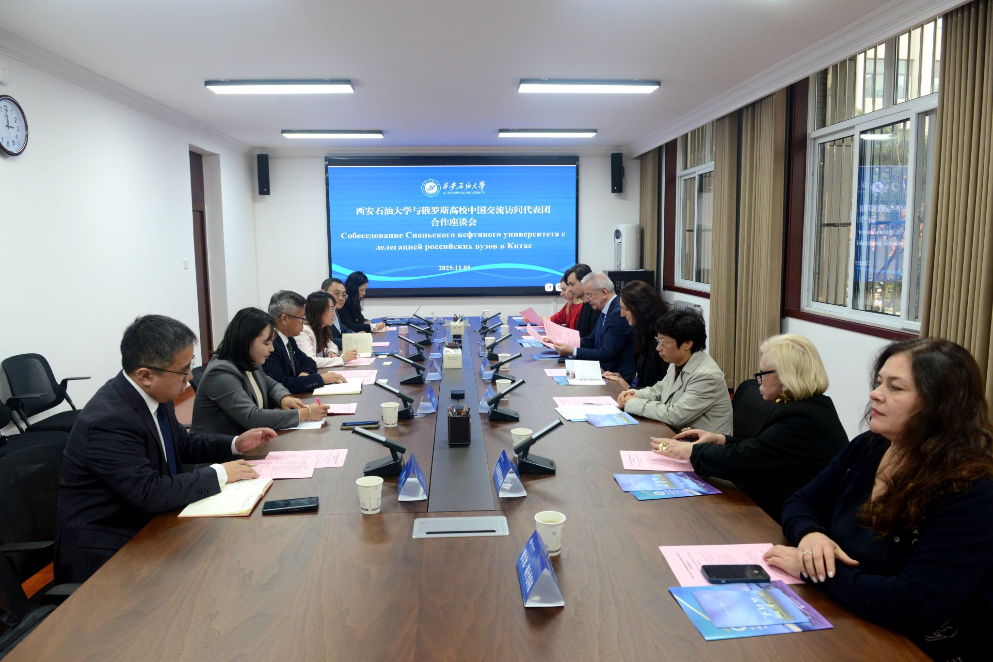 座谈会后,俄罗斯高校中国交流访问代表团一行前往地球科学与工程学院三维可视化虚拟仿真实验室、管道工程学院复杂气体集输模拟管路系统实验室参观。随后,娜塔利娅·维库洛娃、伊姆兰·阿克佩罗夫在鄠邑校区第一会议室作学术报告,百余位师生参会。