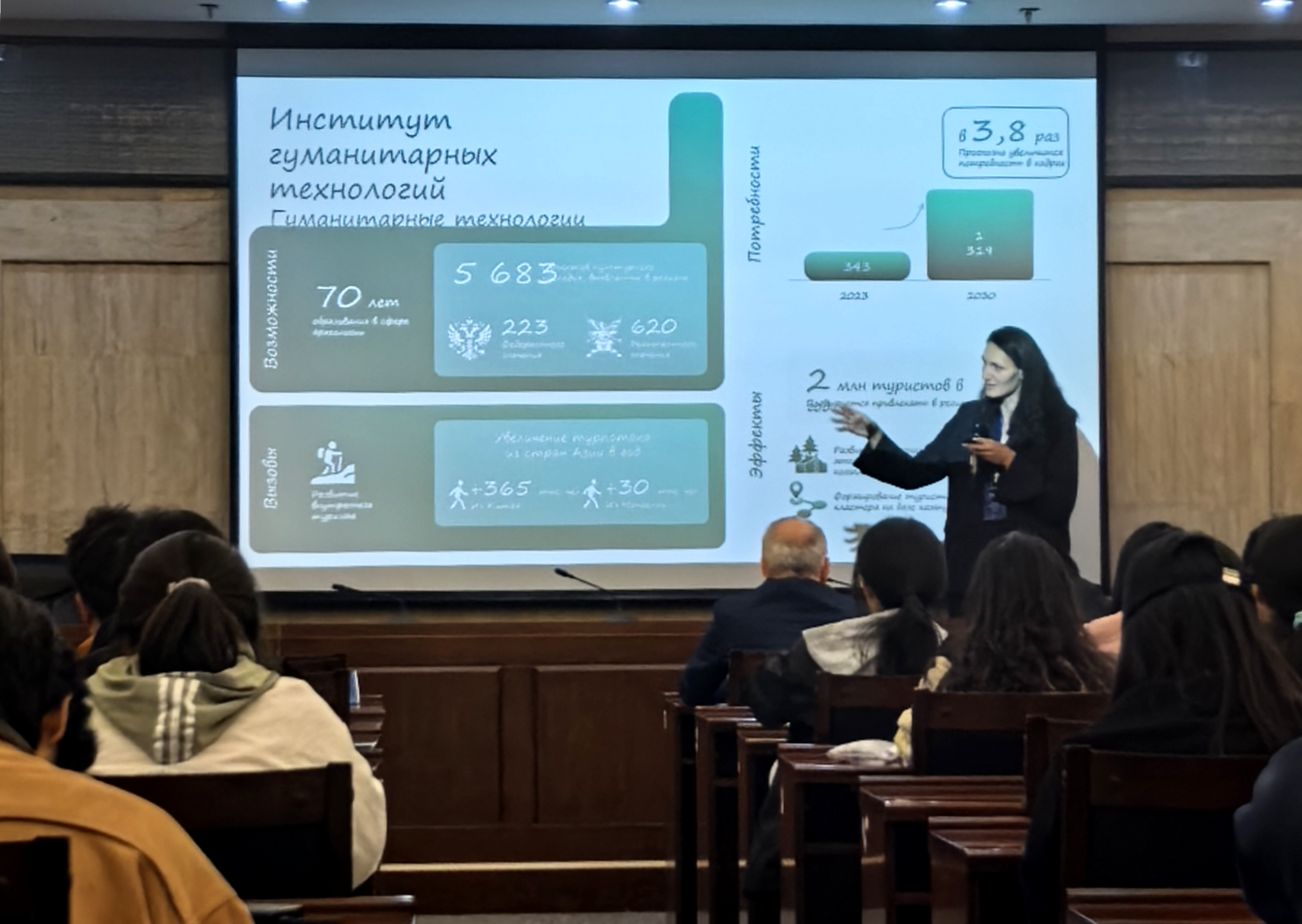 娜塔利娅·维库洛娃在题为《俄罗斯高等教育发展研究》的学术报告中,通过详实的空间地理标识方法,介绍了俄罗斯高等教育的发展现状和典型特征。此后聚焦外贝加尔边疆区,从教育、产业、区域发展等多维分析视角,展示该地区基于资源禀赋形成高等教育特色模式的发展路径。