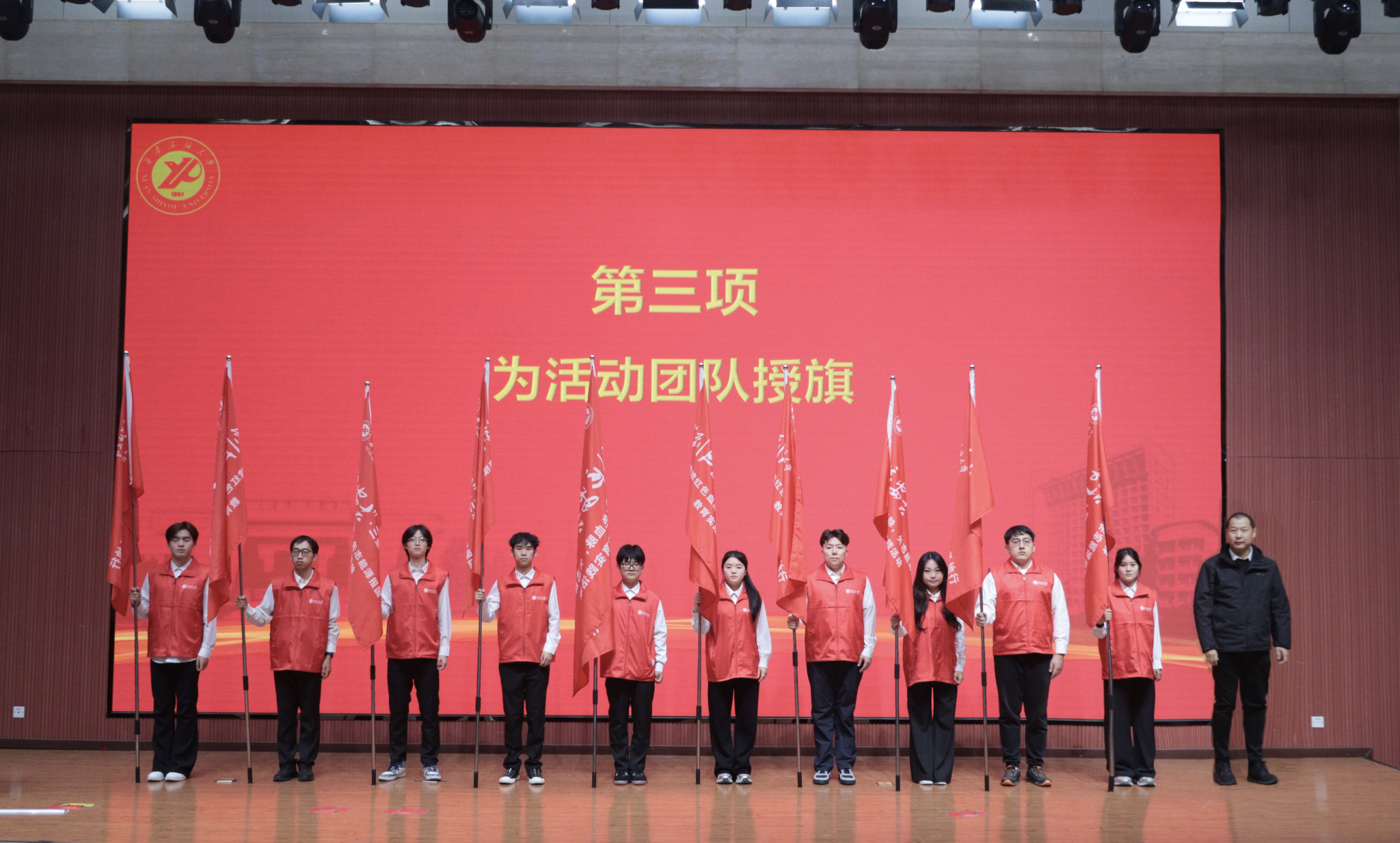 启动仪式上,全体人员集体观看了宣传片《延安欢迎您》,直观感受红色圣地的历史底蕴与时代魅力。党委学生工作部部长王亮宣读活动工作方案,明确了实地参观、现场教学、沉浸式体验等核心内容及行程安排。党委组织部部长高健磊为教育实践活动团队授旗,学生代表上台接旗,接过传承红色基因、践行能源报国的使命担当。马克思主义学院李海霞老师与第十八期校级青马班优秀学员王佳妮同学作为师生代表发言。她们表示,将以此次延安之行为契机,在革命圣地感悟初心使命,把延安精神、石油精神融入学习工作,以实际行动诠释青年担当。