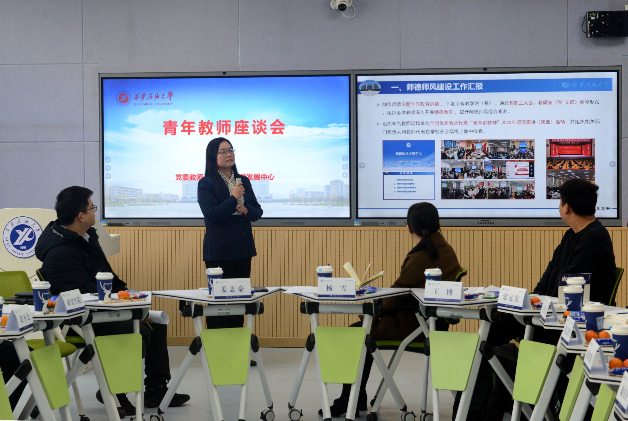 在青年教师经验分享环节,地球科学与工程学院姜志豪副教授、管道工程学院杨雪博士、机械工程学院王博博士结合自身教学科研经历分享了感悟,讲述了自己在团队协作、科研创新、成果转化等方面的心得,表达了青年教师扎根科研、服务社会的决心,并从青年教师成长成才的角度,分享了自己在导师指导、学术交流、平衡教学与科研关系等方面的体会,引发了在场青年教师的强烈共鸣。