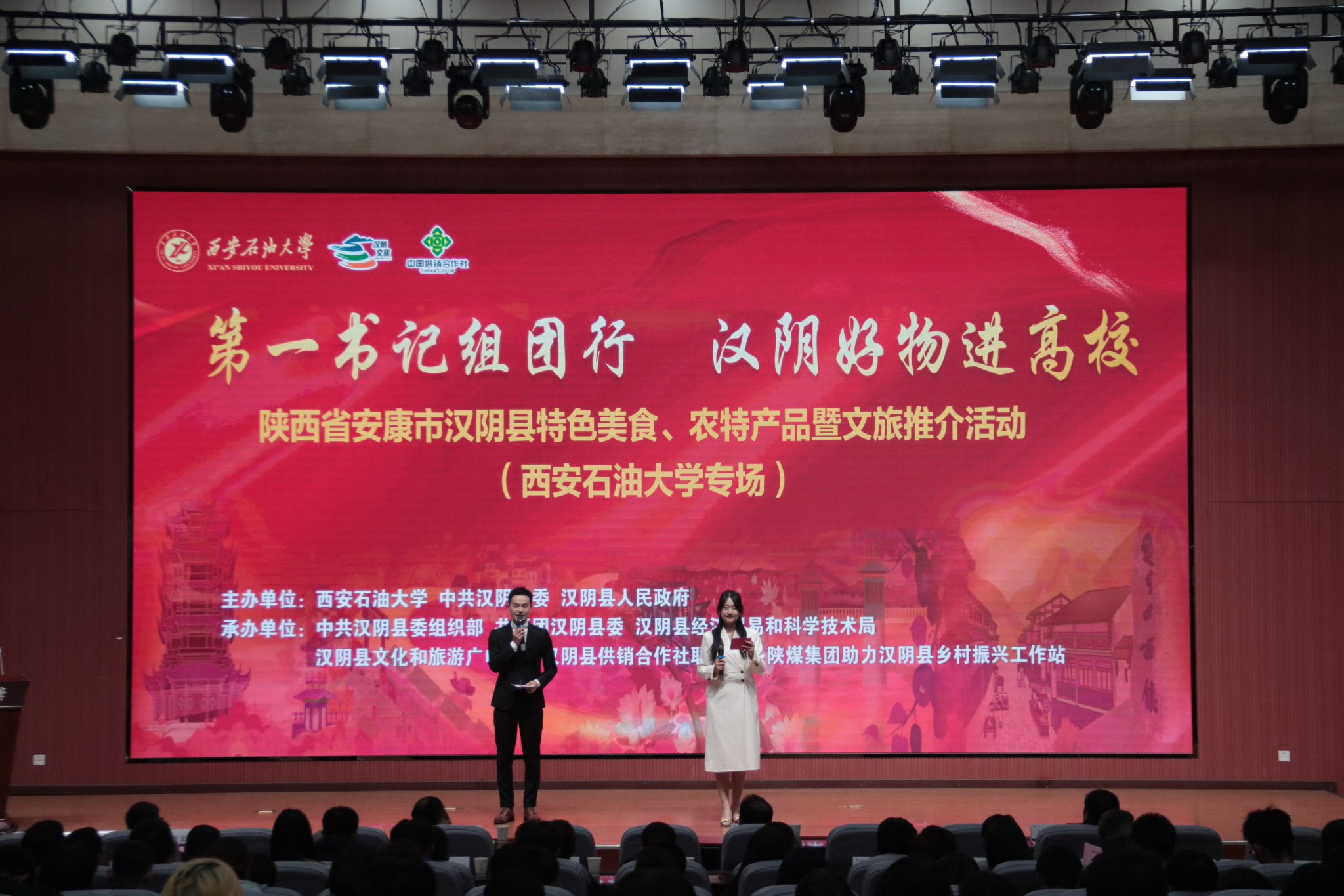 11月20日,“第一书记组团行・汉阴好物进高校”—陕西省安康市汉阴县特色美食、农特产品暨文旅推介活动在beat365官网鄠邑校区成功举办。汉阴县委副书记王众义,县委常委、组织部长李万华,县政府党组成员屈斐斐,县委组织部、共青团汉阴县委、经济贸易和科学技术局、文化和旅游广电局、供销合作社联合社、陕煤集团助力汉阴县乡村振兴工作站等单位负责人,省市县部分派驻汉阴县驻村第一书记和工作队员代表,beat365官网副校长种宇宏,党委组织部、党委学生工作部、校团委、教务处、科研处、校友工作与合作交流处、后勤处、西安石大资产经营有限公司等单位负责人,各院(系)团委(团总支)书记,学生代表参与活动。
