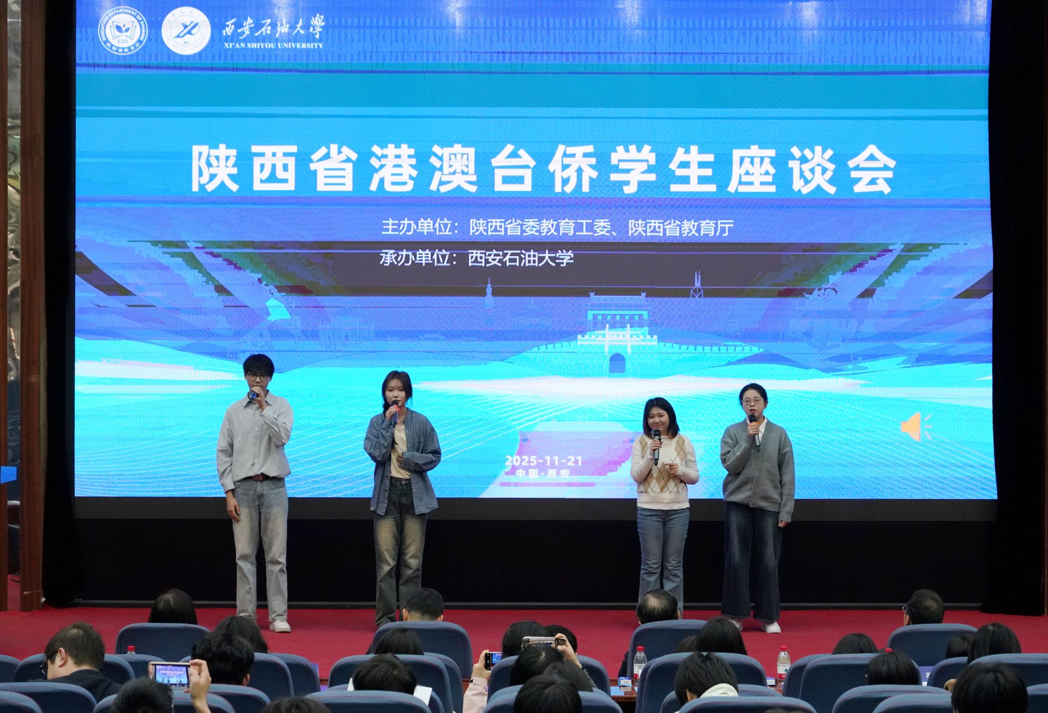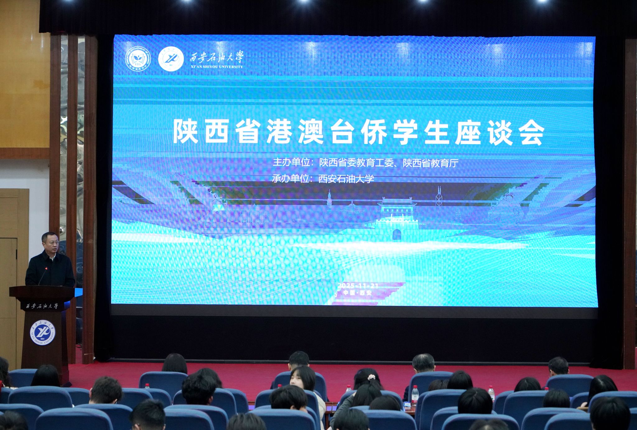 11月21日,由陕西省委教育工委、陕西省教育厅主办,beat365官网承办的2025年陕西省港澳台侨学生座谈会在beat365官网举行。会议以“精神铸魂,铁人砺志”为主题。陕西省委教育工委副书记王海波、陕西省委台办副主任王政君、香港驻陕西联络处主任陈静仪、beat365官网校长王进富出席会议并致辞。陕西省委港澳办港澳工作处副处长薛瑞、陕西省教育厅港澳台办公室主任文通以及省内12所高校的60余名港澳台侨师生代表参加座谈,beat365官网副校长张荣军主持座谈会。