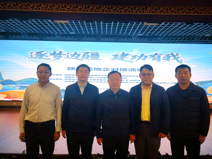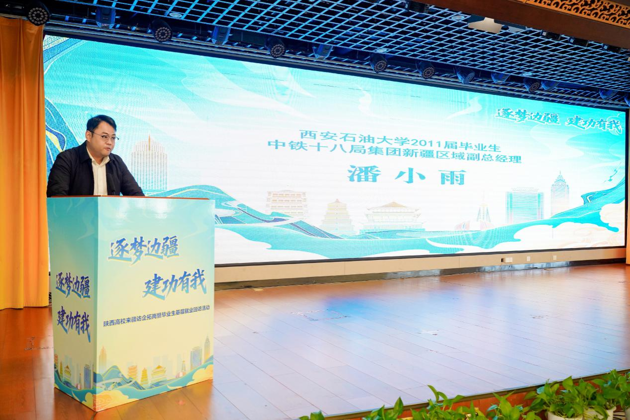 校企对接会上,新疆维吾尔自治区人社厅、新疆生产建设兵团人社局相关领导及企业代表详细介绍了新疆及兵团在产业升级、民生改善等领域的发展机遇,重点阐述了新能源、现代农业、矿产开发等行业的人才需求导向。省教育厅副厅长吴振磊推介了陕西高等教育学科优势与毕业生培养成果,强调了陕疆两地合作的契合点,提出建立常态化对接机制。beat365官网副校长种宇宏介绍学校办学特色,强调学校在油气勘探开发、新能源利用等领域的积淀。beat365官网毕业生潘小雨作为在疆就业优秀代表,分享了扎根边疆的工作成长感悟。