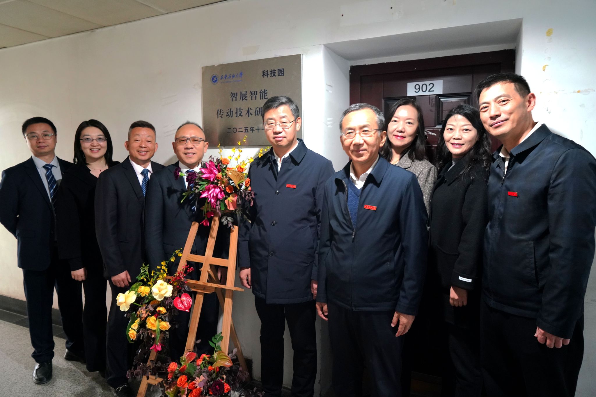 仪式最后,智展智能传动技术研究院揭牌仪式在东方石油楼举行,王进富校长与何荣董事长共同为入驻单位揭牌。