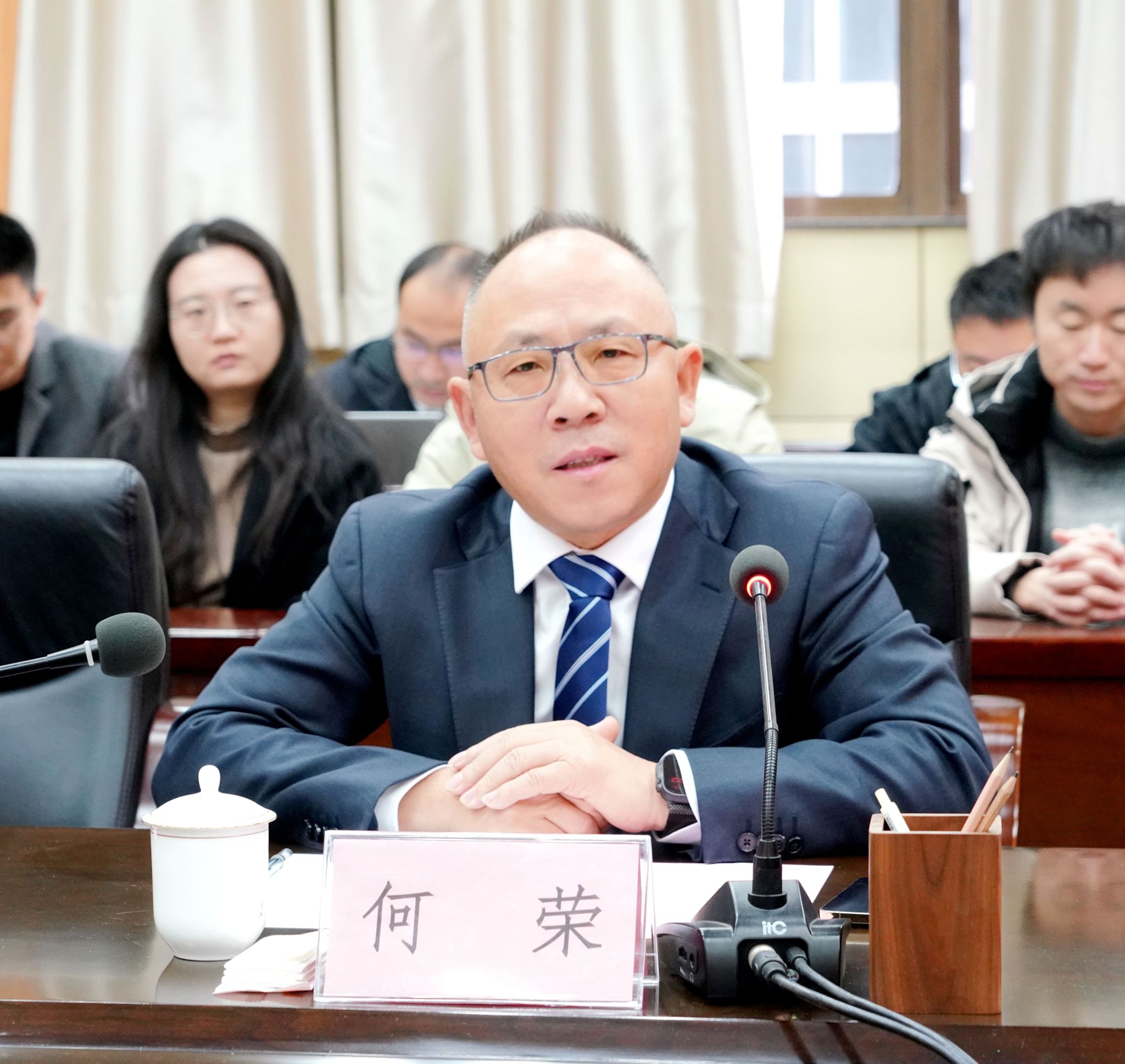 何荣感谢母校多年来的培养,深情回顾了母校求学经历及母校在培养过程中对自身“三观”的塑造及影响。他简要介绍了公司概况及取得的成就和未来研究院研发方向。他希望双方在资源共享、项目合作等方面深化联动,共同挖掘创新潜力、培育优质项目,从而推动双方长足发展。