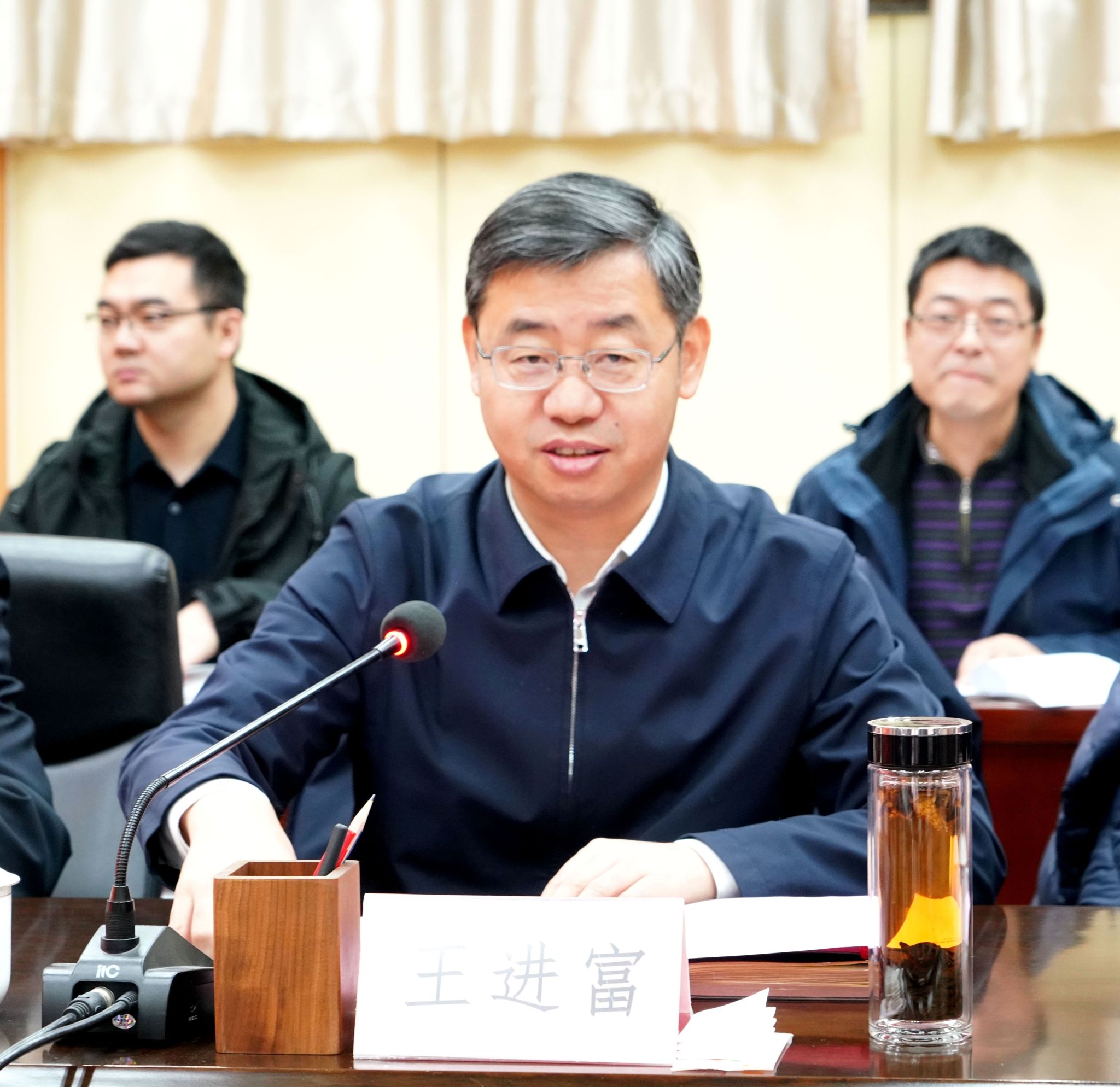会前,王进富在雁塔校区会议中心贵宾室热情会见了何荣一行,张木、张荣军等参加了会见。