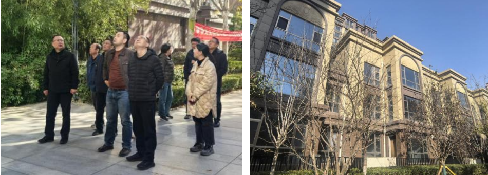 当日上午,考察组一行先后前往明珠汇博林项目与西北大学第一医院进行实地考察,详细查看了两个项目外墙的施工工艺、材料质量及后期维护情况,直观评估了不同材料在实际工程应用中的性能表现。针对项目外墙出现的脱落、明显色差等共性问题进行了深入讨论,避免类似问题在后续学校建设项目中重现。