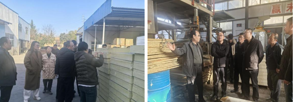 随后,考察组前往一体板生产公司参观聚氨酯一体化板车间,实地考察了一体板的的合成过程及配套加工机械。参观结束后,双方就聚氨酯氧化和受力性能等具体技术问题展开讨论交流。公司负责人通过模型展示的方式,详细阐释了一体化板的施工工艺及性能优势,考察组对其实际应用效果给予认可。