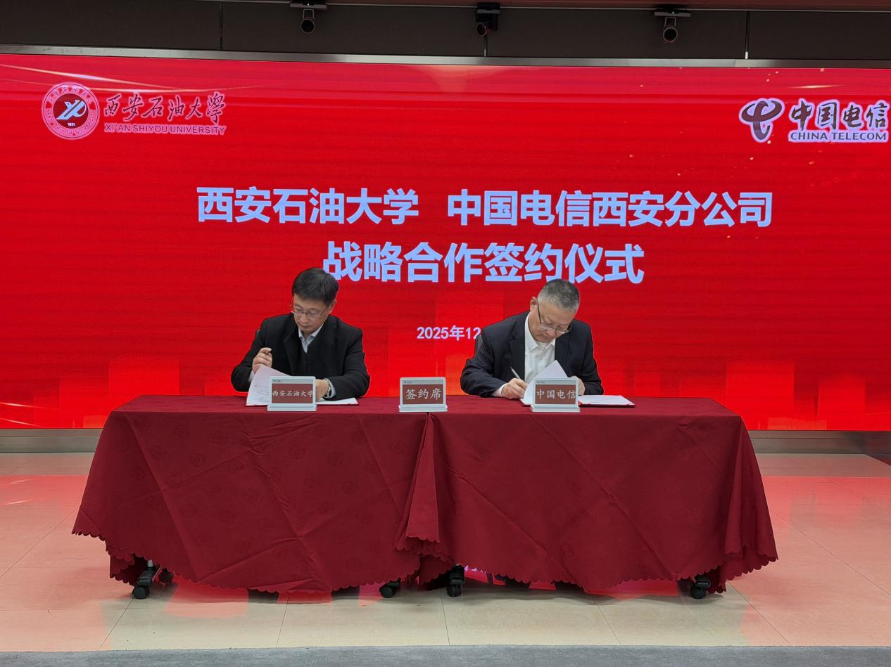 苏文甫对陕西电信的热情接待和对学校建设发展的支持表示感谢,对中国电信在5G、云计算、人工智能、算力、大模型等方面的战略布局表示高度赞赏,对构建校企价值共同体、深化协同合作、最终达成互利共赢的战略目标表示高度认可。他指出,教育行业正朝着AI赋能、基础设施重构、主动安全与价值释放的方向发展,学校将在重塑教育形态、创新科研范式、优化治理模式上着力推进信息化建设。他强调,此次战略合作具有承前启后的重要意义,期望双方在信息化基础设施建设、智慧校园应用、产学研协同和人才培养等领域深化合作,携手打造校企协同共赢的典范,为区域经济发展和国家能源战略高质量发展注入新动力。