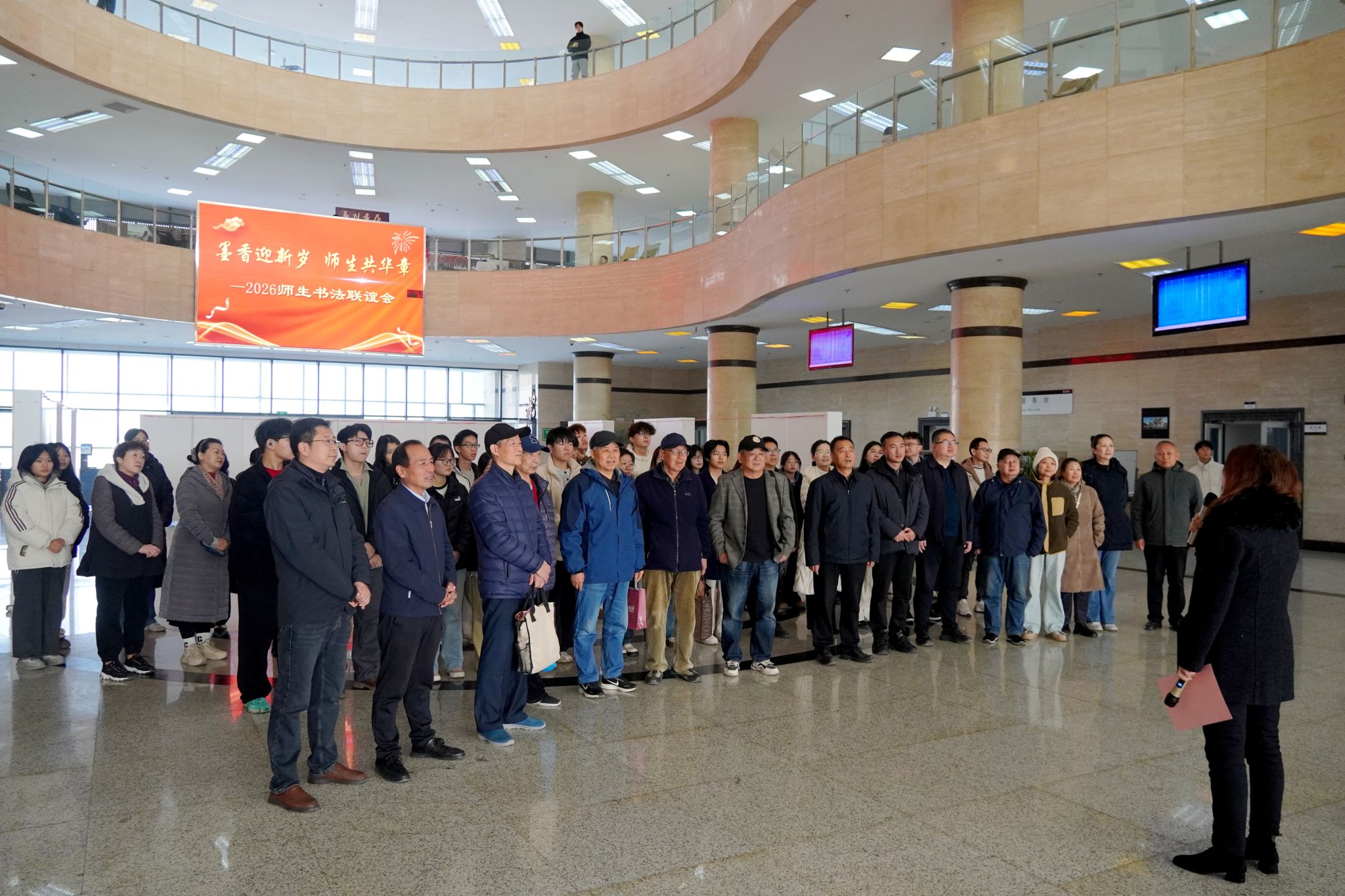 活动尾声,师生共同将当日创作的50余幅作品悬挂于图书馆大厅,幅幅作品饱含了对文化的诠释、新年的期许和对未来学校发展的美好祝愿。