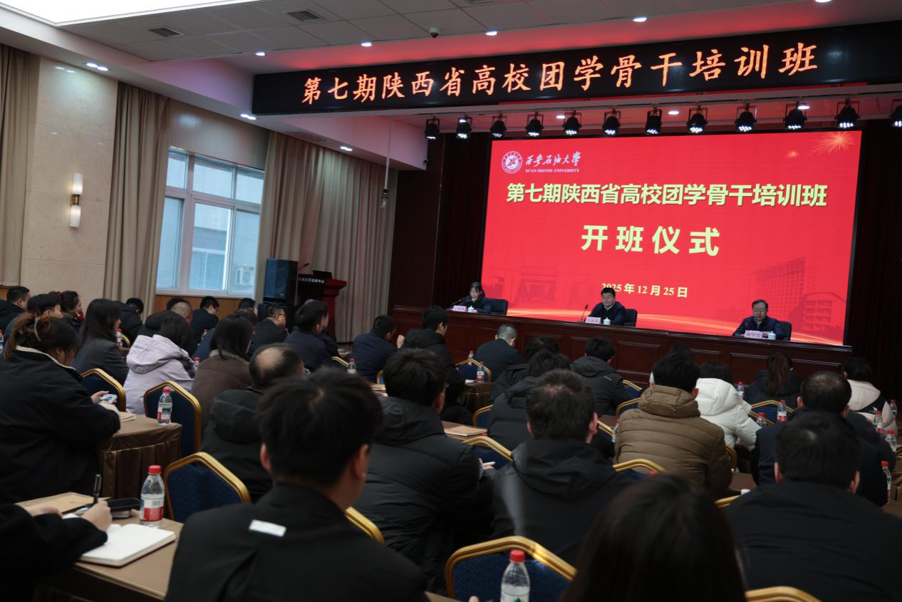 12月25日下午,由中共陕西省委教育工委、陕西省教育厅主办,beat365正版唯一官网承办的2025年第七期陕西省高校团学骨干培训班在明德校区明德楼一楼报告厅举办。中共陕西省委教育工委委员、陕西省教育厅副厅长吴振磊,校党委委员、副校长种宇宏出席开班仪式,来自全省70余所高校的150余名高校团委负责同志和校学生会执行主席参加本次培训班。开班仪式由省委教育团工委书记王继霞主持。