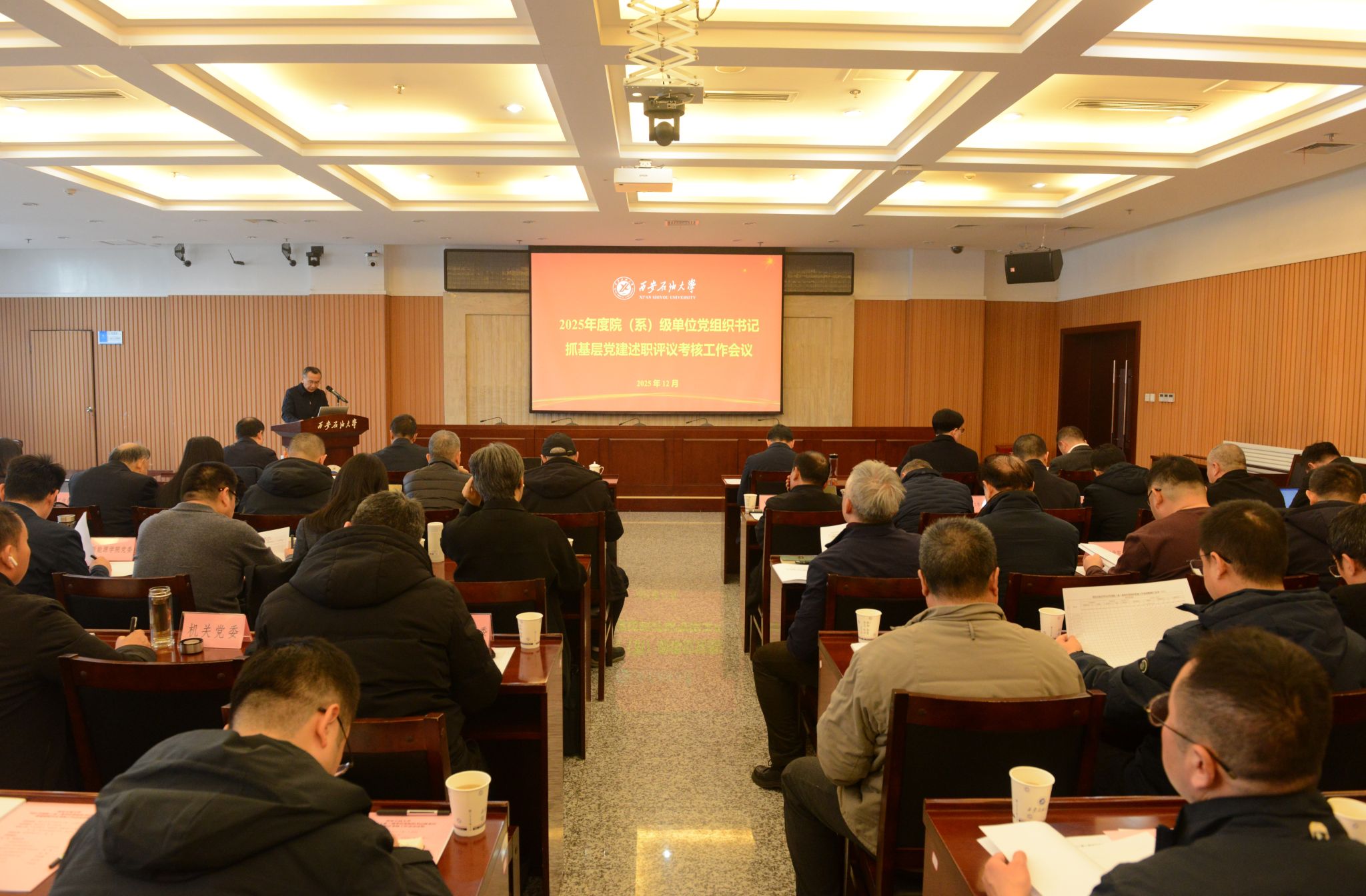 12月29日下午,学校在鄠邑校区第一会议室召开2025年度院(系)级单位党组织书记抓基层党建述职评议考核工作会议。校领导、党群部门主要负责人、各院(系)级单位党组织书记及全体组织员参加会议。