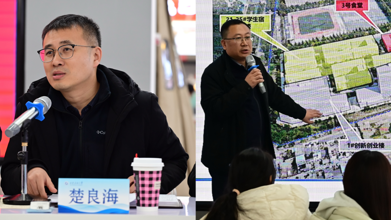 随后,基建处负责人介绍了鄠邑校区整体建设规划和重点工程推进情况,表示学校将持续推进教学科研、学生宿舍和公共服务设施建设,完善校园功能布局。目前,学生宿舍和科研配套项目正有序实施,后续将统筹推进教学科研楼、创新创业空间和公共活动场所建设,同步提升校园景观和公共空间品质。