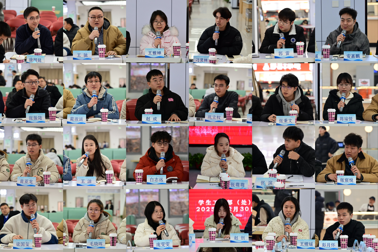 在交流环节,学生代表结合学习生活实际和规划内容,围绕大学生活动中心功能布局、校园文化标识和文创产品建设、学生宿舍条件改善、校区住宿资源统筹、线上求职面试设备保障、校园道路与公共空间安全维护、用电服务便利化以及校园网络和通信信号覆盖等方面提出了宝贵的意见建议。相关建议聚焦学习生活中的实际需求,体现了同学们对学校发展的关心与期待。