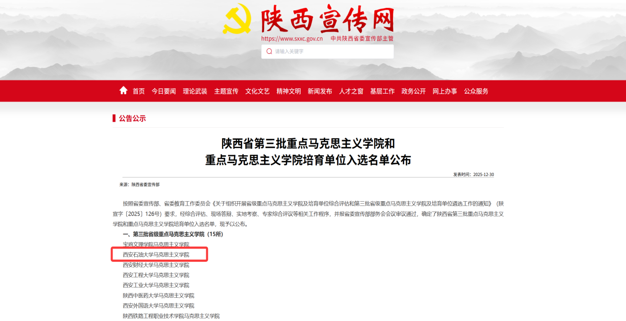 按照省委宣传部、省委教育工作委员会《关于组织开展省级重点马克思主义学院及培育单位综合评估和第三批省级重点马克思主义学院及培育单位遴选工作的通知》(陕宣字〔2025〕126号)要求,经综合评估、现场答辩、实地考察、专家综合评议等相关工作程序,并报省委宣传部部务会会议审议通过,确定了陕西省第三批重点马克思主义学院和重点马克思主义学院培育单位入选名单,beat365官网马克思主义学院成功入选陕西省第三批重点马克思主义学院。这标志着beat365官网马克思主义学院建设迈入了新的阶段,将在更高平台、更高层次上开启新时代马克思主义学院建设新征程。