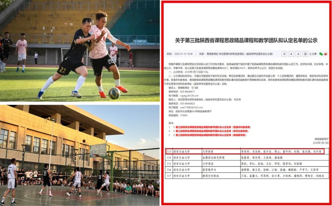 深耕体育思政内涵,创新特色育人模式。学院立足石油石化行业特色背景,创新提出“双精神互融”体育育人理念,推动“铁人精神”与体育精神的深度耦合,打造具有一定特色的育人模式。学院设立“体育素养与石油职业适应性”专题模块,在训练中融入“铁人式”体能挑战,在竞赛中打造“石油杯”等行业主题赛事,将“能源报国”使命担当与体育竞技坚韧品格深度融合,构建起“课内外一体化”全域育人生态。2025年,《大学体育》课程教学团队成功获批陕西省课程思政示范课程和教学团队,其体育课程思政建设经验被多所高校借鉴采纳,形成“一校创新、多校联动”的推广格局,让西石大体育育人经验走出校园、辐射行业。